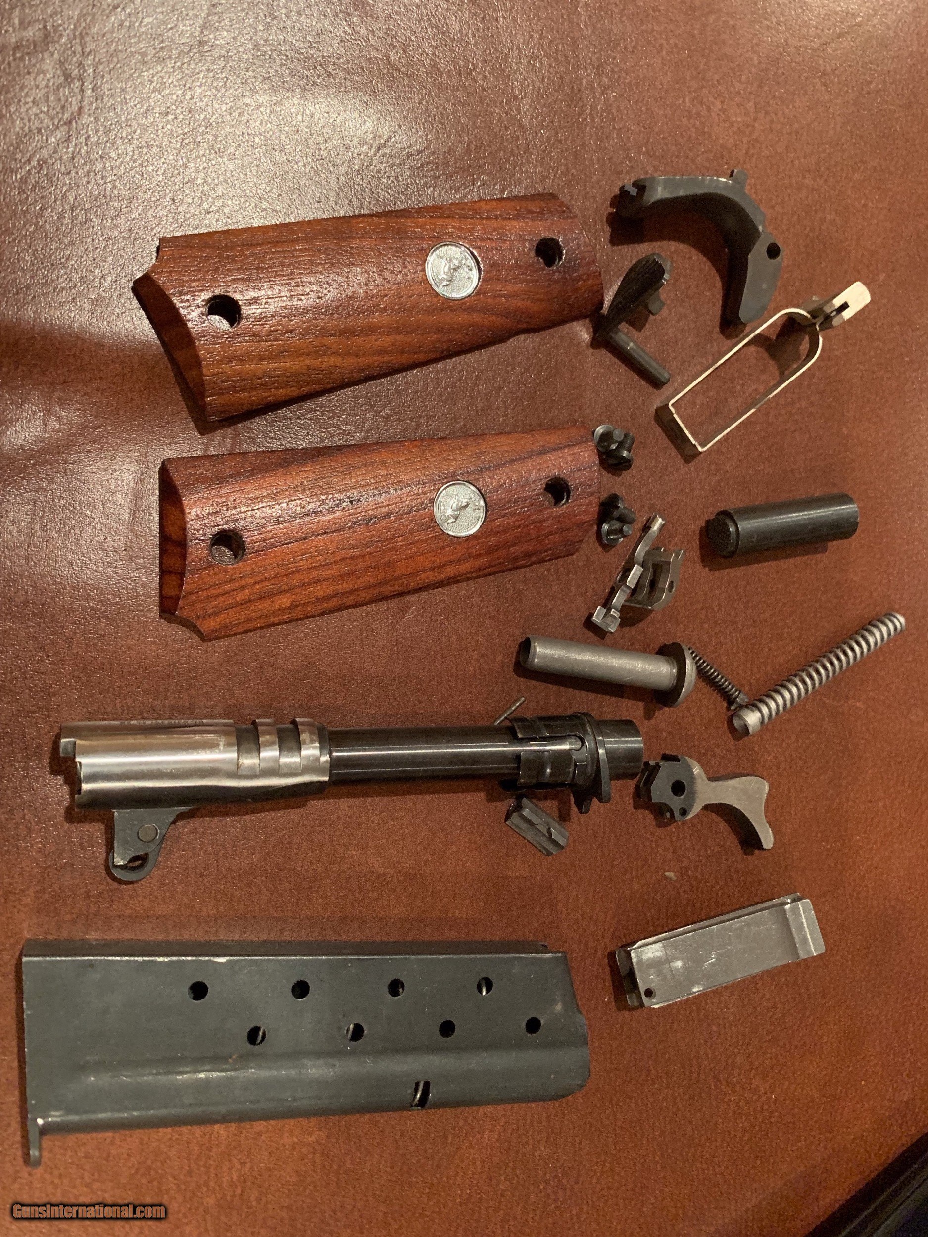 Description: Colt 1911 9mm parts. From a near new original 70 series. Everything but the slide and frame. 70G 11865 The Colt barrel and bushing alone are worth $200. SOLD |