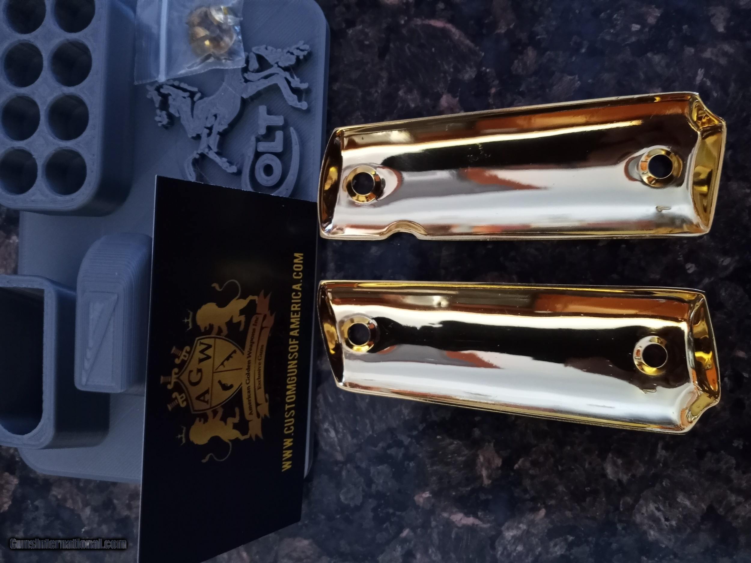 Description: Custom grip 1911 hand made 24k gold plated best quality SOLD |