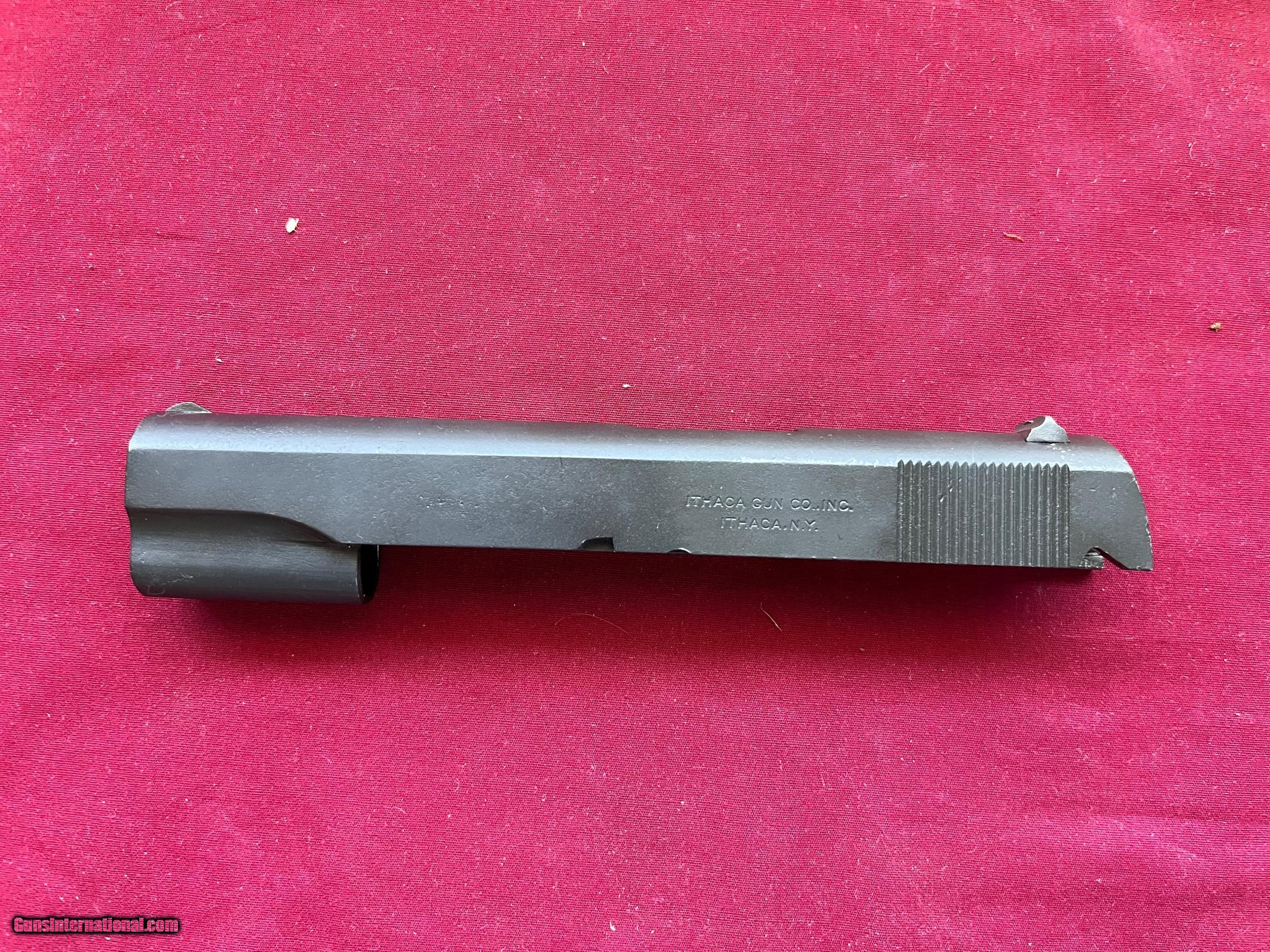 Description: U.S. ARMY MILITARY ITHACA 1911A1 SLIDE . SLIDE HAS SOME LIGHT PEPPERY PITTING. LOOKS LIKE AN ARSENAL FINISH . ADD16.00 SHIPPING EASTERN BRANCH FIREARMS ADD 40.00 SHIPPING – NEXT DAY AIR SHIPPING ADD 50.00 SHIPPING – LONG GUNS GROUND OPTIONAL INSURANCE IS AVAILABLE AT 1.25 PER 100.00 Questions e-mail or call Glen at Eastern Branch Firearms 207-215-5021 TERMS – PLEASE READ BEFORE I DO NOT HAVE A LAYAWAY OPTION ( WE ACCEPT CREDIT CARDS ) -- I GET ALOT OF REQUEST FOR TRADES, I WOULD PERFER NOT TO DO TRADES ON MY INTERNET LISTINGS PAYMENT OPTIONS- We accept money orders, cashier’s checks , bank checks. sorry no personal checks. We accept all major credit cards please add 3% to the ’s cash discount price.(Shipping within the state of Florida - Florida Residents must pay sales tax) .Handguns and long guns do need to be shipped separate. PLEASE do not send payment via FED EX . USPS & UPS are fine. Thank you. We include a signed copy of our FFL with each firearm shipped. SAFTY NOTICE- Buyer is solely responsible for determining that a used gun is safe to shoot. The firearms offered have not been test fired but have been given a visual inspection only for purposes. It is a requirement that every used firearm is inspected by a qualified gunsmith before firing. By , the buyer agrees to hold seller harmless against damages, injury, or death caused by defective merchandise. U.S. sales only, no exports…this includes antiques. I will ship to third party for exporting SOLD |