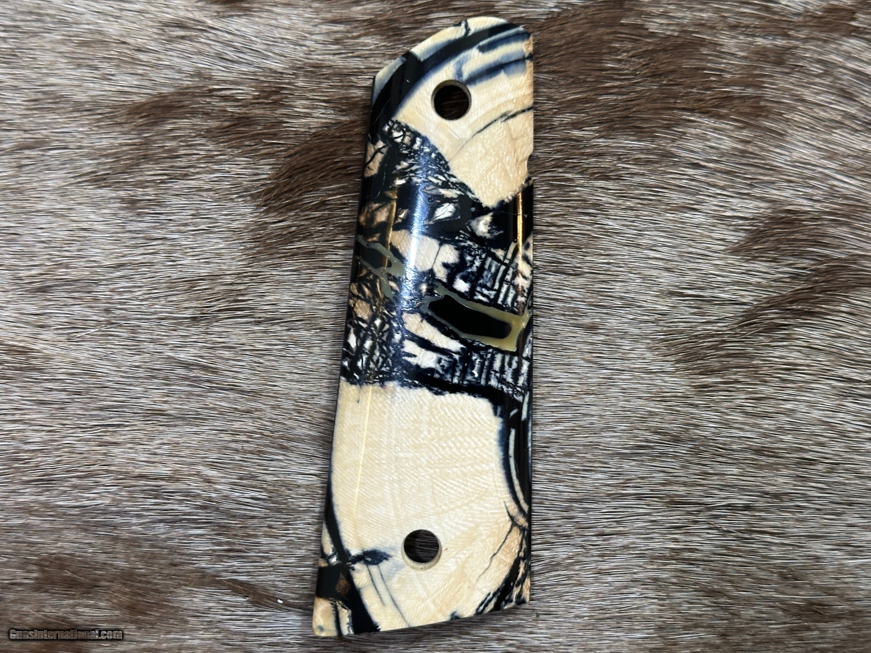 Description: NEW NIGHTHAWK CUSTOM CROSS-CUT MAMMOTH IVORY 1911 GOVERNMENT AND/OR COMMANDER GRIPS Set your 1911 apart with these beautiful mammoth tusk ivory 1911 grips. Each set of grips has been crosscut from fossilized mammoth tusk, creating unique patterns and breathtaking colors. Note: The grips shown in the pictures are the actual grips you are ordering. SPECIFICATIONS