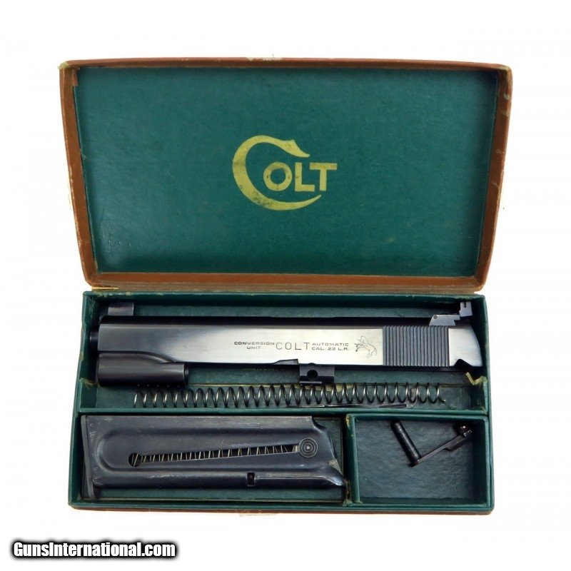 Description: "Colt Early Post-War Conversion Unit. Customized for bull’s-eye shooting with MMC sights. Has been expertly refinished with a polished blue. Excellent condition with box. SOLD |