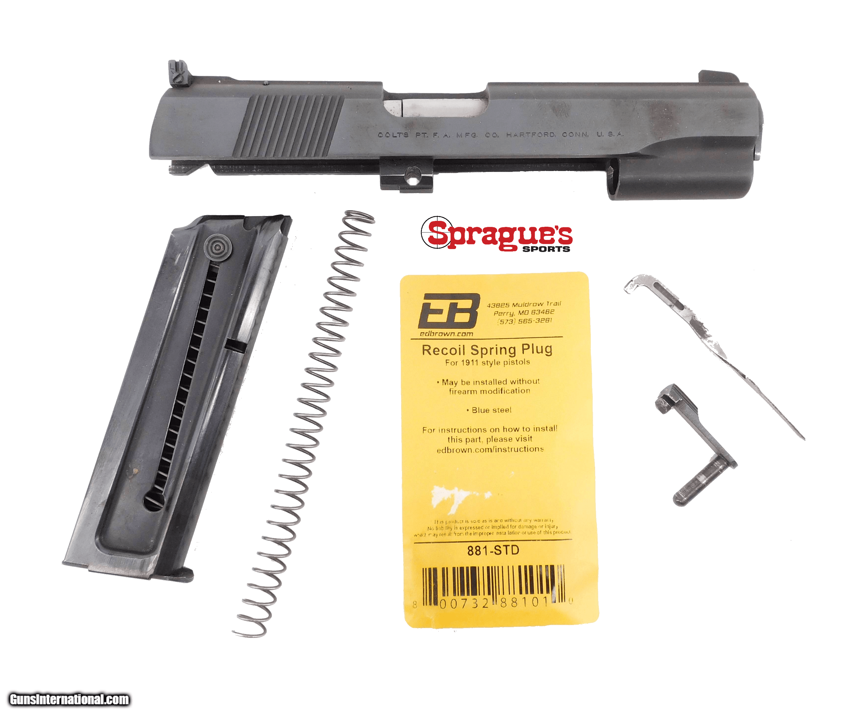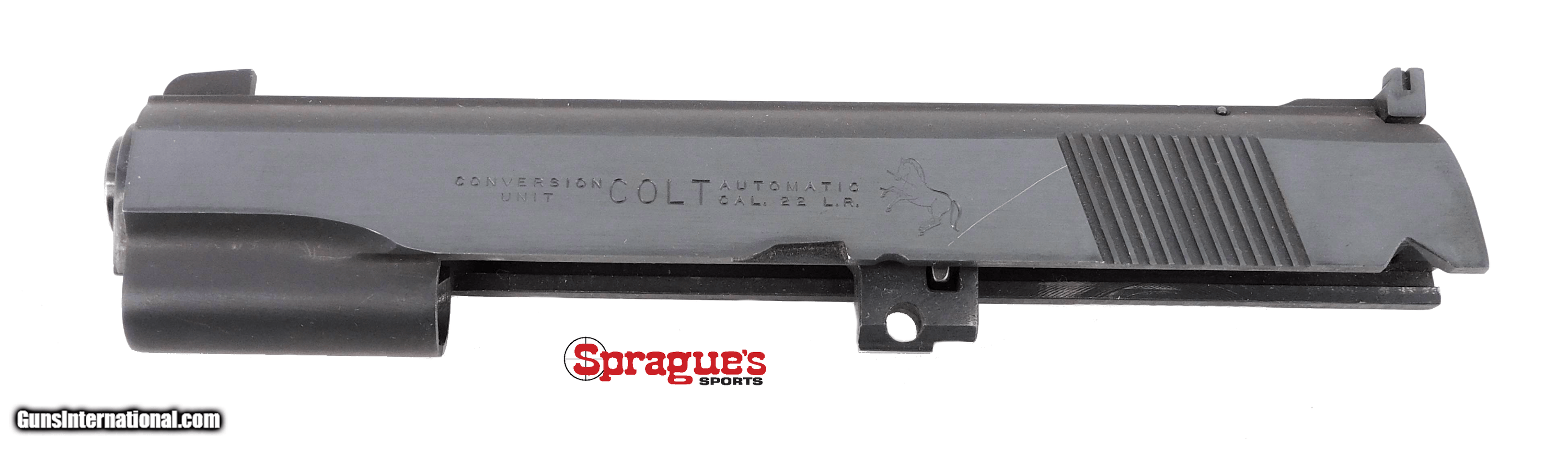 Description: Colt 1911 22 LR Conversion Kit (ONLY) 5" Slide/BBL One Mag Recoil Spring ++ Includes ALL Parts As Pictured (NOT A COMPLETE PISTOL) Manufacturer: Colt Model: 1911 Conversion Unit for .22 LR (ONLY) - NOT A COMPLETE PISTOL Caliber:.22 LR Manufactured:In the U.S.A. Barrel:5", bright shiny bore, good rifling Rear Sight:Adjustable square notch Front Sight:Blade style Optic:N/A Finish:Blued, light handling marks, one light scratch on left side of the slide behind the Rampant Colt logo Action:This is a .22 LR conversion kit only - NOT A COMPLETE PISTOL Grips:N/A Accessories:N/A Condition:This used Colt 1911 .22 LR conversion kit is in very nice condition and ready for installation on your Colt Government model pistol. Serial Number:N/A Sprague's Number:007278 +++++++++++++++++++++++++++++++++++ Add 3% for Credit Card Shipping will be $35.00 +++++++++++++++++++++++++++++++++++ This .22 LR conversion kit will allow your 1911 handgun to shoot inexpensive .22 LR ammunition and will be a GREAT addition to your future outings! In-house pictures are of the item(s) being sold and the item(s) that will be shipped to the buyer! If there are no boxes, documentation, accessories, etc. shown in the pictures or described in the description, they are not included. Any stock pictures will be labeled as such. PRIOR TO PURCHASE!!! We will do our best to answer all questions Monday through Saturday during business hours, but are CLOSED ON SUNDAY. PLEASE ALLOW 7-10 BUSINESS DAYS FOR PROCESSING PRIOR TO BEING SHIPPED ONCE PAYMENT AND FFL INFORMATION HAVE BEEN RECEIVED. Buyers are responsible to ensure that you have fully reviewed the listing before purchase. Buyers are responsible to know and ensure that they are in compliance with local, state, and federal regulations/laws and are of legal age for items purchased. We have not test fired any firearms unless specifically noted in the description. Have a GREAT SAFE HEALTHY day! SOLD |