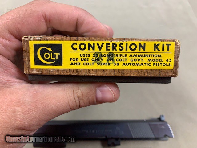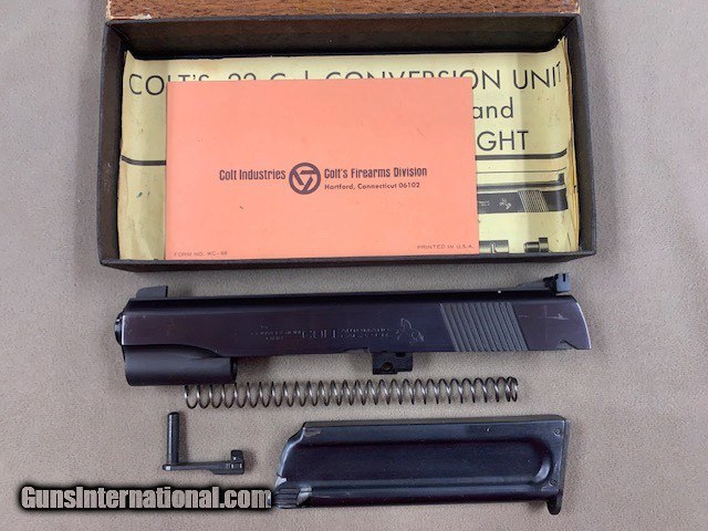 Description: An original Colt .22 caliber conversion unit for the Gov't Model .45 or .38 Super. Unit is complete and unused - as new in the original box w/paperwork. SOLD Handgun Caliber: .22 Long Rifle |