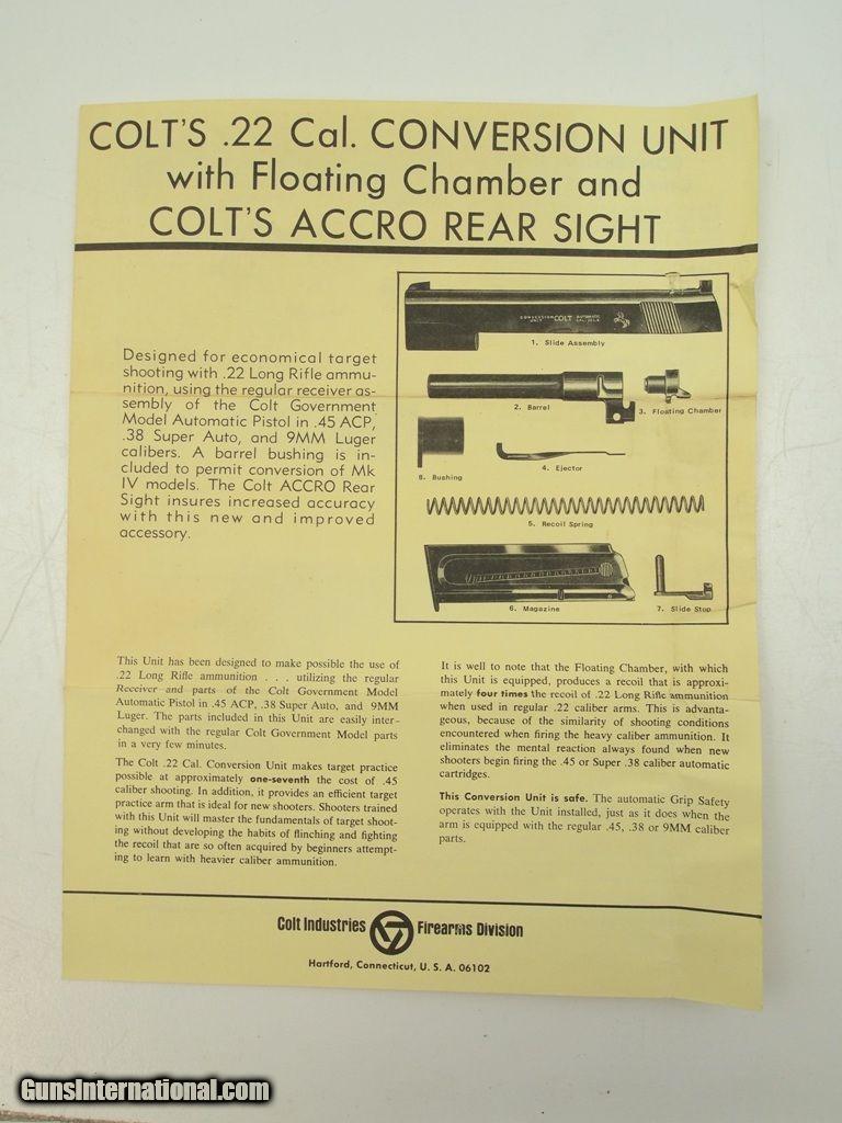 Colt Conversion Kit .22 LR For Govt Model 45 and Super 38, NIB