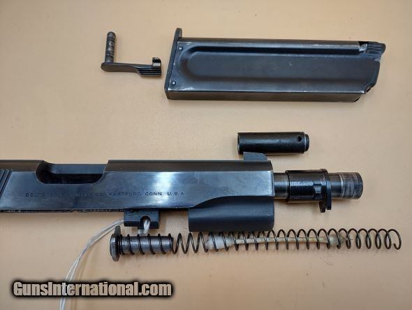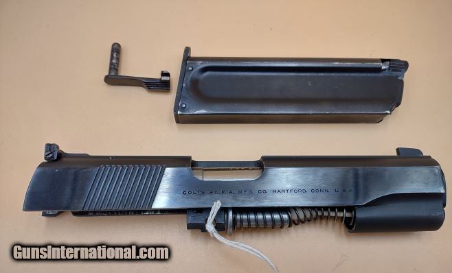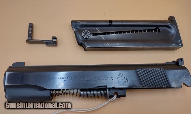 Description: Here is an original Colt 1911A1 .22lr Conversion unit. Comes with complete upper, 1- magazine and slide stop, all original. Some holster wear on the slide close to the muzzle. Crown, lands and grooves all nice. $649.00 plus actual postage and insurance delivered. We accept USPS postal money orders for imediate shipping and personal check that will ship on the clearance of the check. Questions, email us at infowmrfirearms SOLD Handgun Caliber: .22 Long Rifle |