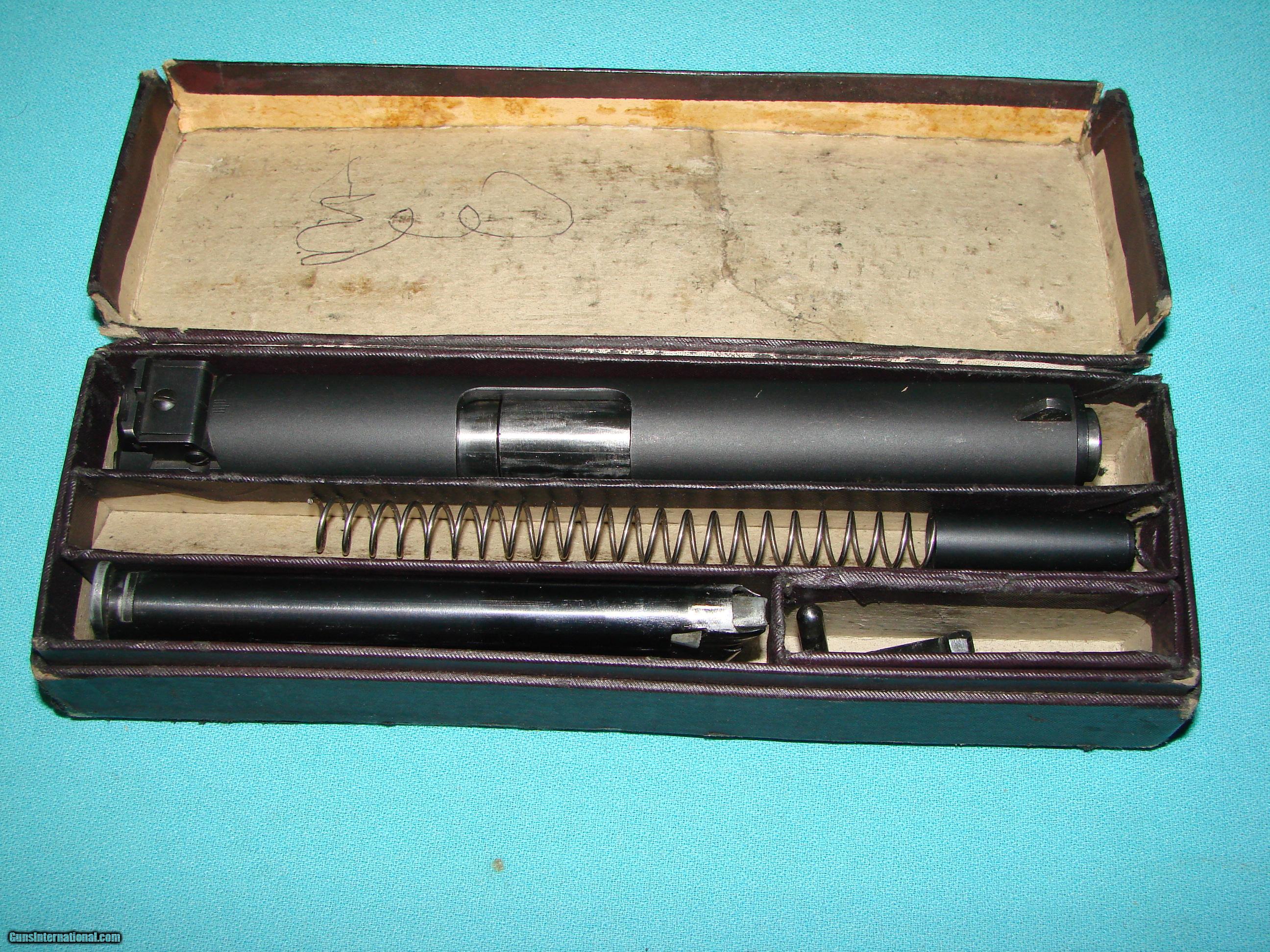 Description: Colt 22LR Conversion Unit Post war{Late 40's} with Coltmaster sights. No serial number and slide stop is unnumbered. Kit comes with all parts. The kit is used and shows some wear to the moving parts. Bluing on slide is very good with some light wear. Comes with box. *No extra fees, You only pay for the cost of the item & $35 for shipping{AK&HI Extra} Arizona Residents Must Pay Sales Tax. *Legendary Guns in Phoenix AZ 602-242-1195 Hours of operation M-F 10-6 Sat 10-5 Closed Sundays. *All items online are also for sale at our Phoenix location *Please call the shop for any questions and to confirm availability before buying. We are happy to answer all questions. *We offer a 3 day inspection period with a full refund if item was misrepresented. We accept returns for any reason within the 3 day inspection period with NO refund for shipping coming or going and a 15% restocking fee. *We Only accept/consider trades that can be brought to our Store in Phoenix. *Your State Laws are your Responsibility to know. *Items ship once your Dealers FFL is received SOLD |