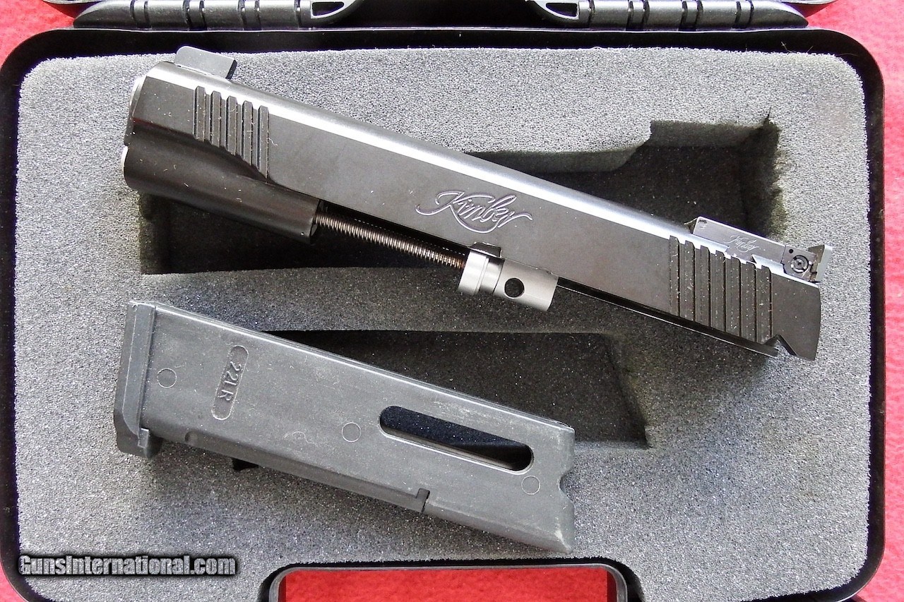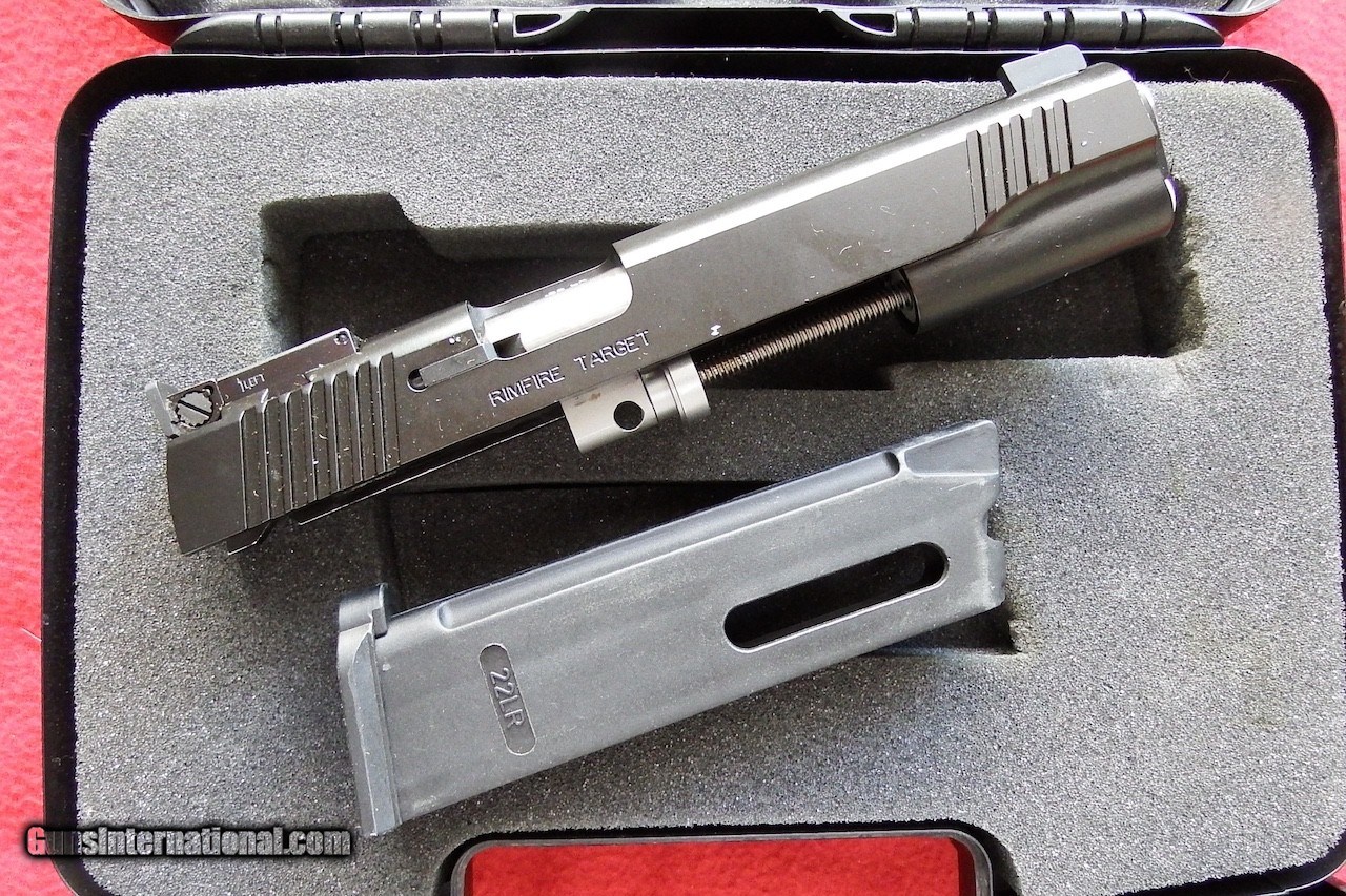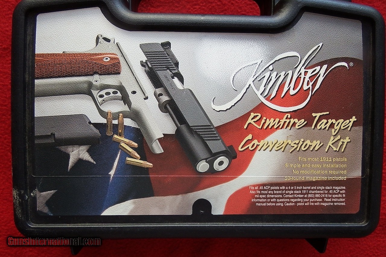 Description: If you're looking for an opportunity to do some cheap practice shooting with your favorite carry or competition gun, convert your 1911 to fire rimfire ammunition in just minutes. This high quality unit fits most 1911-style, single stack handguns chambered in 45 ACP. (Not compatible with ramped barrel and will not work with a 1911 chambered in 40 S&W, 38 Super or 9mm Luger) These drop-in units require no modifications to your gun and do not require changing mainsprings. Conversion units will fit compact models, but the magazine will protrude slightly below the grip. Includes adjustable sights, travel case and a 10-round magazine. Kimber strongly recommends using only premium ammunition with plated bullets. Non-plated lead bullets may cause failures. Notes: This rimfire conversion is not for use with the Taurus PT1911 or shorter barreled variants of the 1911 platform. Shippiong $15, Payment: Money Orders or Cashiers Check. SOLD |
