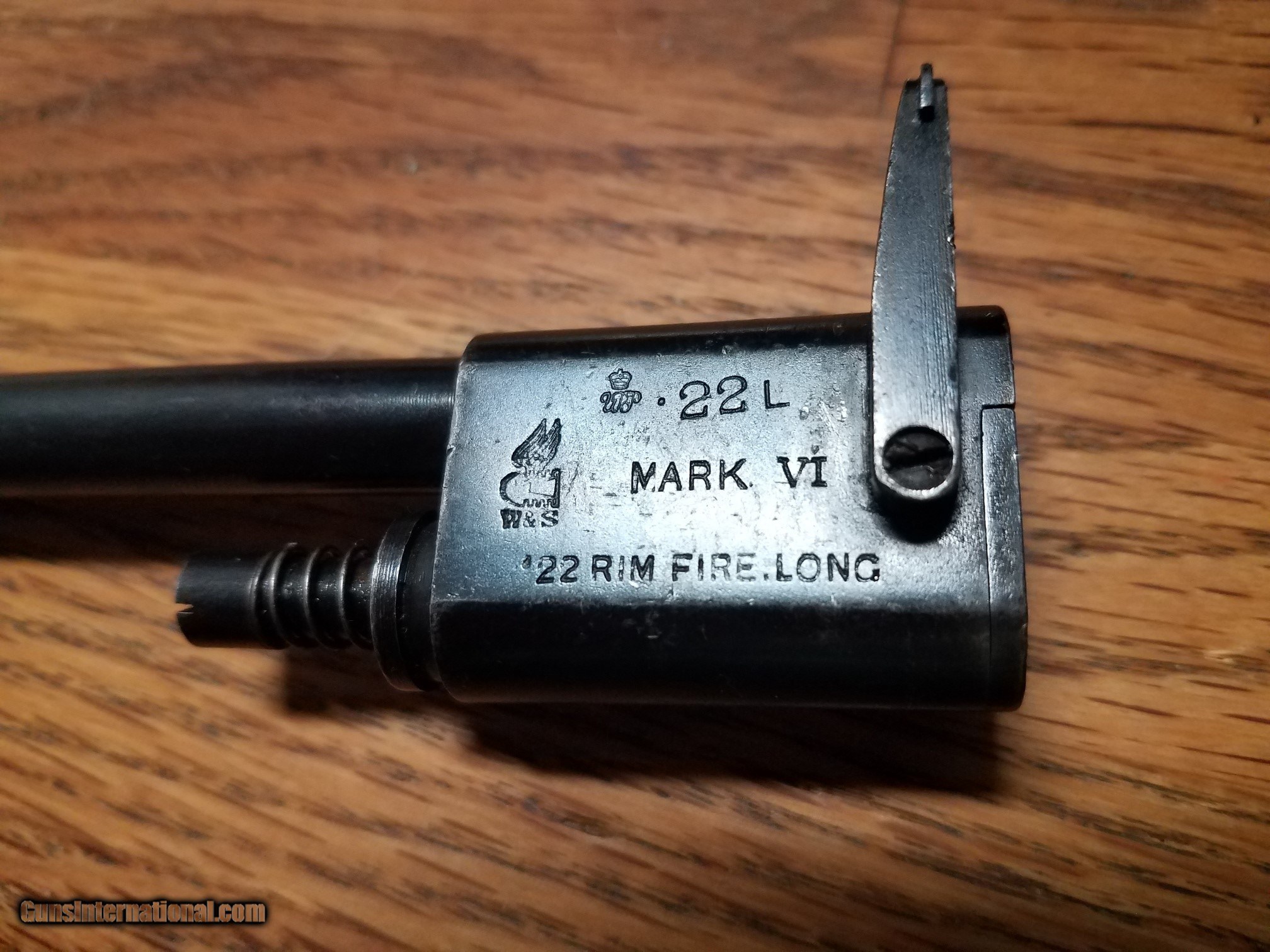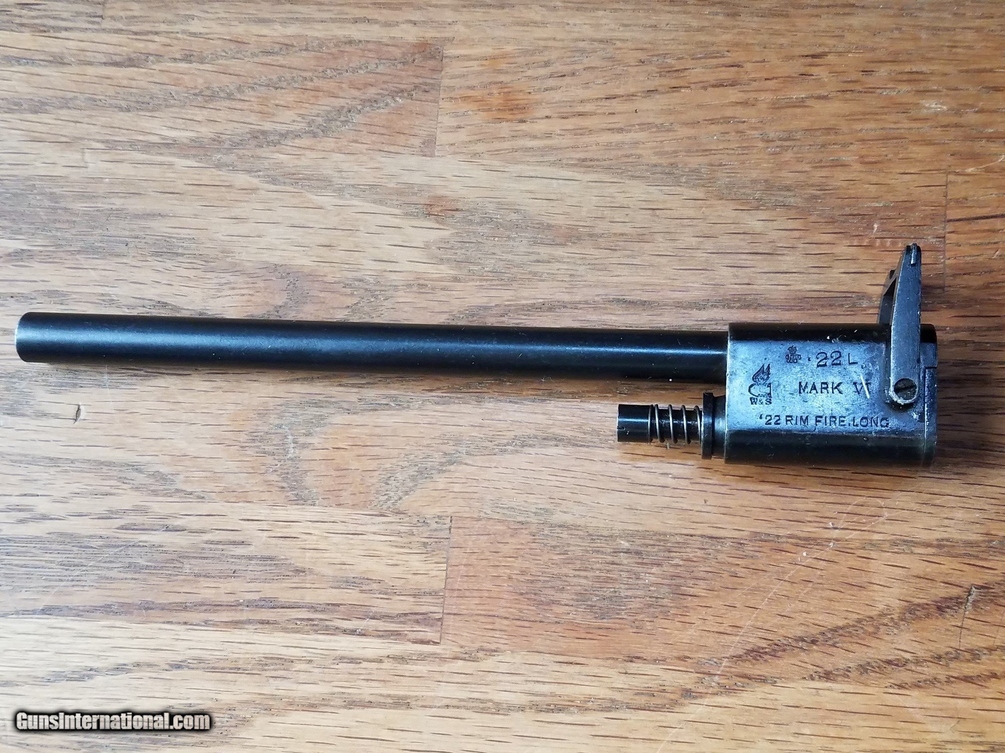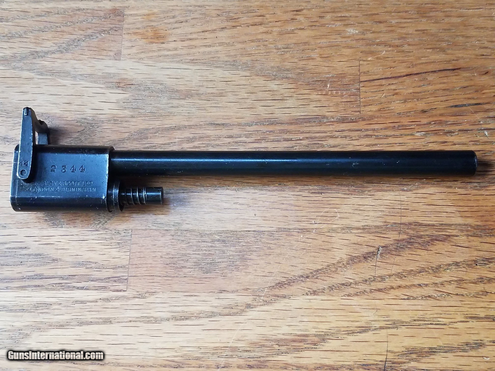Description: Extremely RARE Webley & Scott Conversion unit for MK IV .455 caliber revolvers. EXCELLENT Condition, with almost ALL original bluing and a shiny (looks unused) bore with sharp rifling. Remove the cylinder and insert this unit for single-fire .22 bullets. Chambers .22 Long Rifle bullets perfectly. Post-WWI era production, so this unit is approaching one hundred years old. The LINK is for a short YouTube video showing this unit in action. Copy and paste the LINK, or Search YouTube for "Webley & Scott .22 Conversion Kit". Thank you for looking and please contact us with any questions. ://youtube/watch?v=BiKaKO8gkIc SOLD Rifle Caliber: .22 Long Rifle Handgun Caliber: .22 Long, .22 Long Rifle |