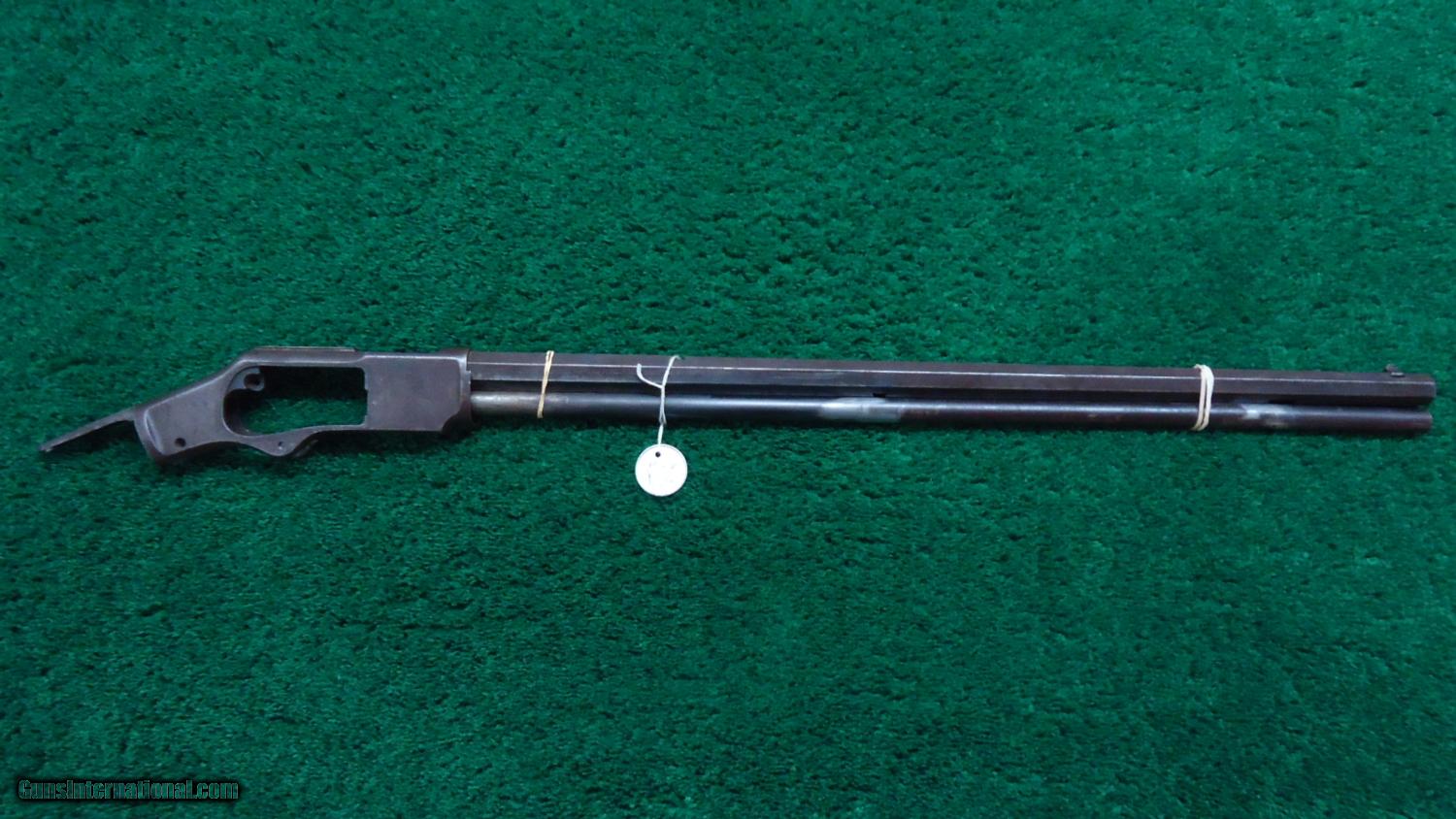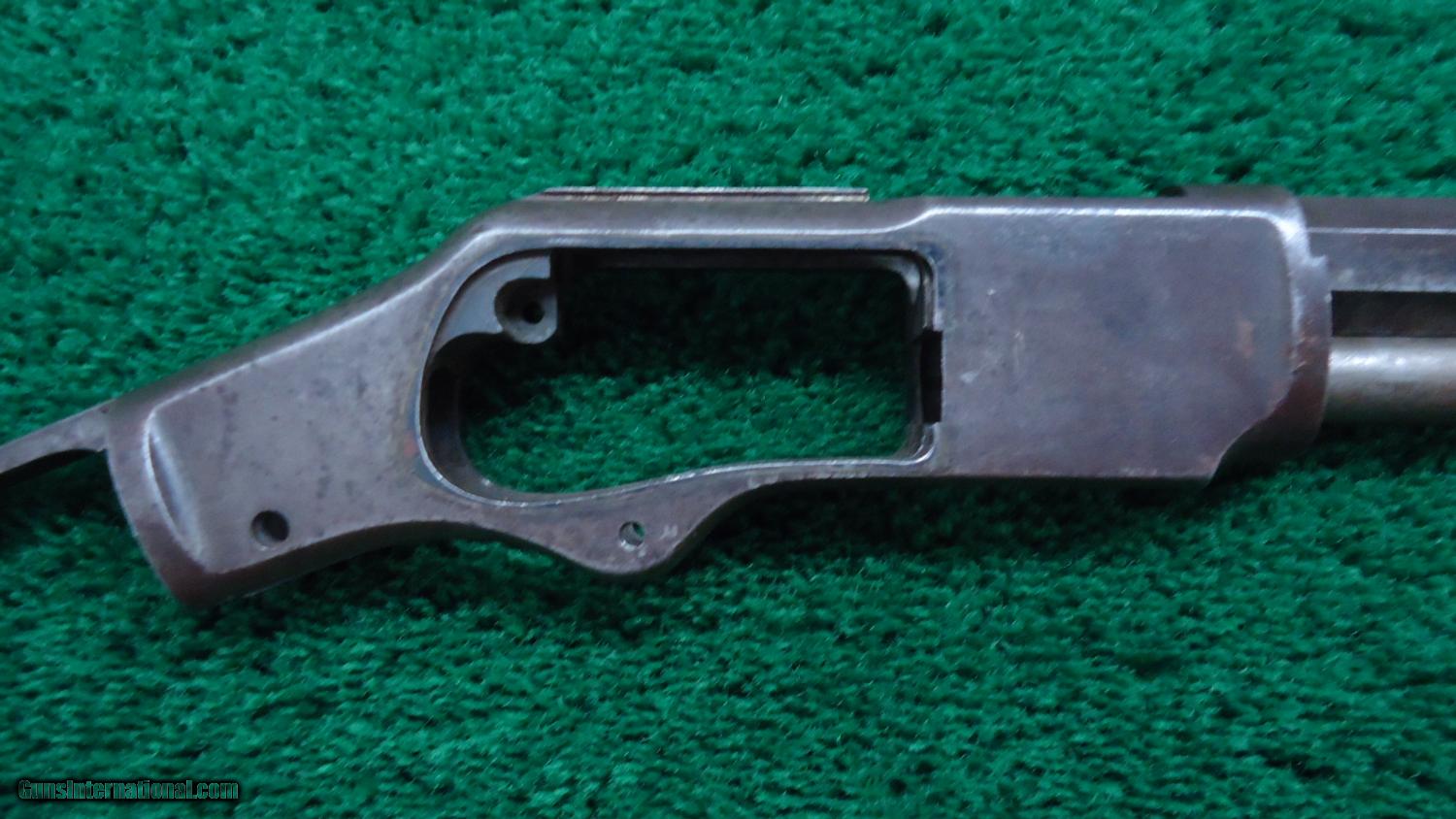 Description: Not a complete gun. A stripped down frame with all parts removed. 44 cal . Octagon bbl and a mag tube. Frame is a medium brown color with light pin prick pitting in places but overall good metal cond. Bbl is orig 24" and has front sight but no rear sight. Bore is fair to good. A few light pits and some roughness. Good rifling. A good project if you have a bunch of 73 parts. Leroy Merz Antique Firearms specializes in antique and vintage Winchesters and other fine American firearms. Since 1965 Mr. Merz has taken part in the world of firearms and has been a contributor to many well known reference books. Just recently we mailed the 125th edition of our privately-published catalog. We have hundreds of additional guns in every price range at our home online. Search for Merz Antiques in google. SOLD |