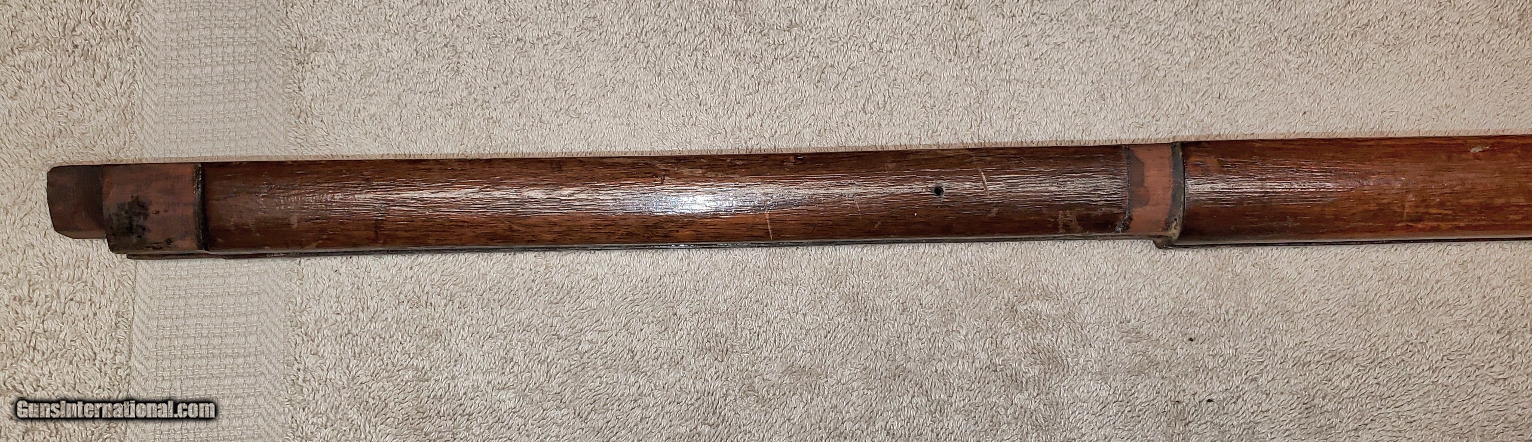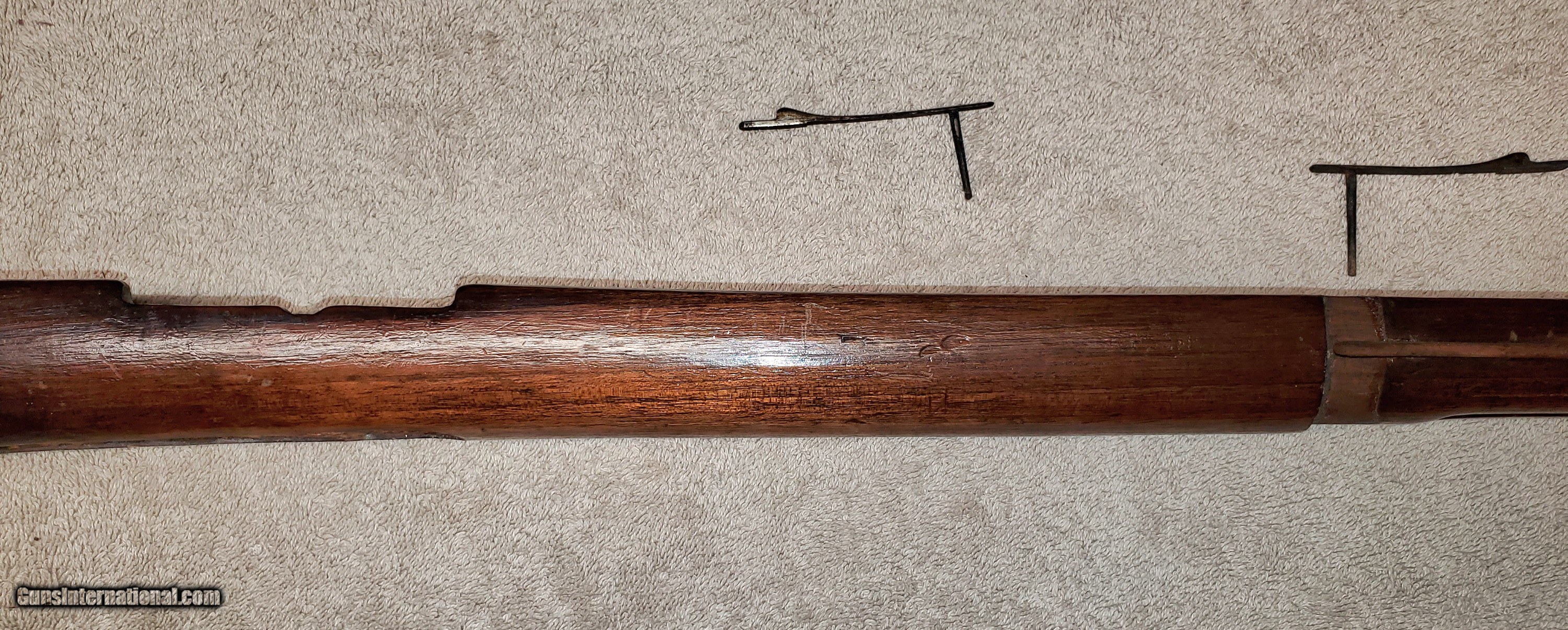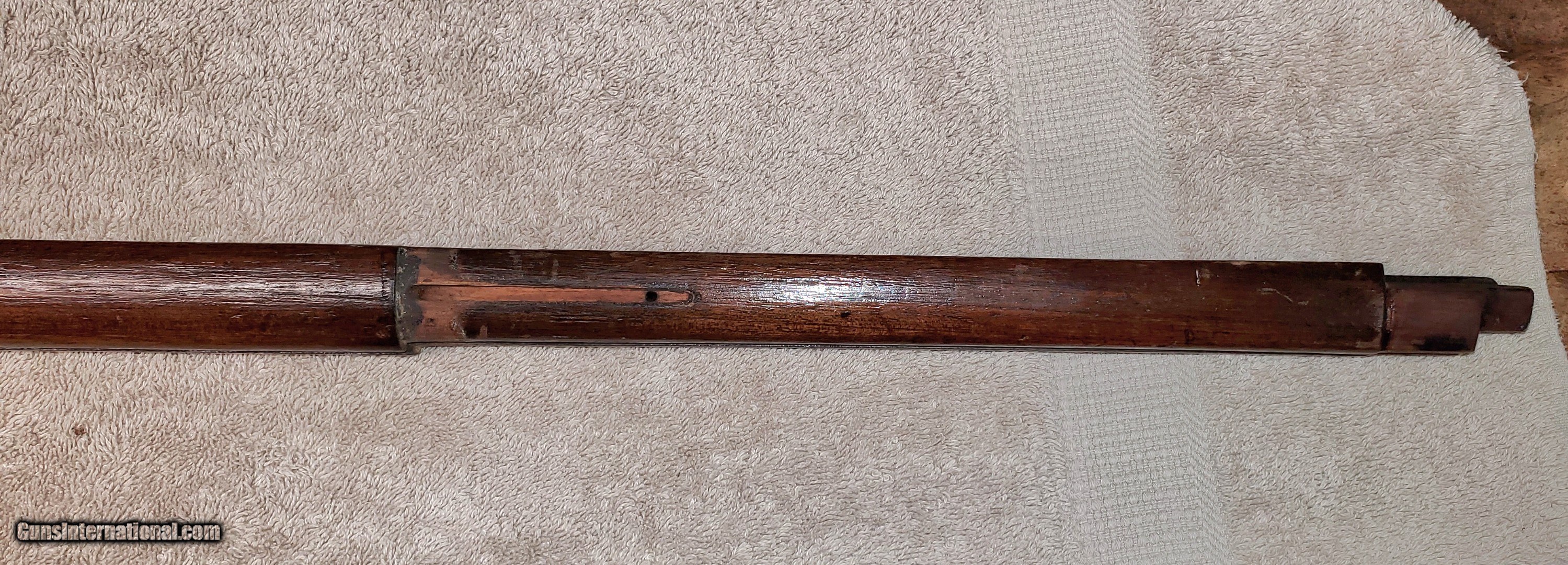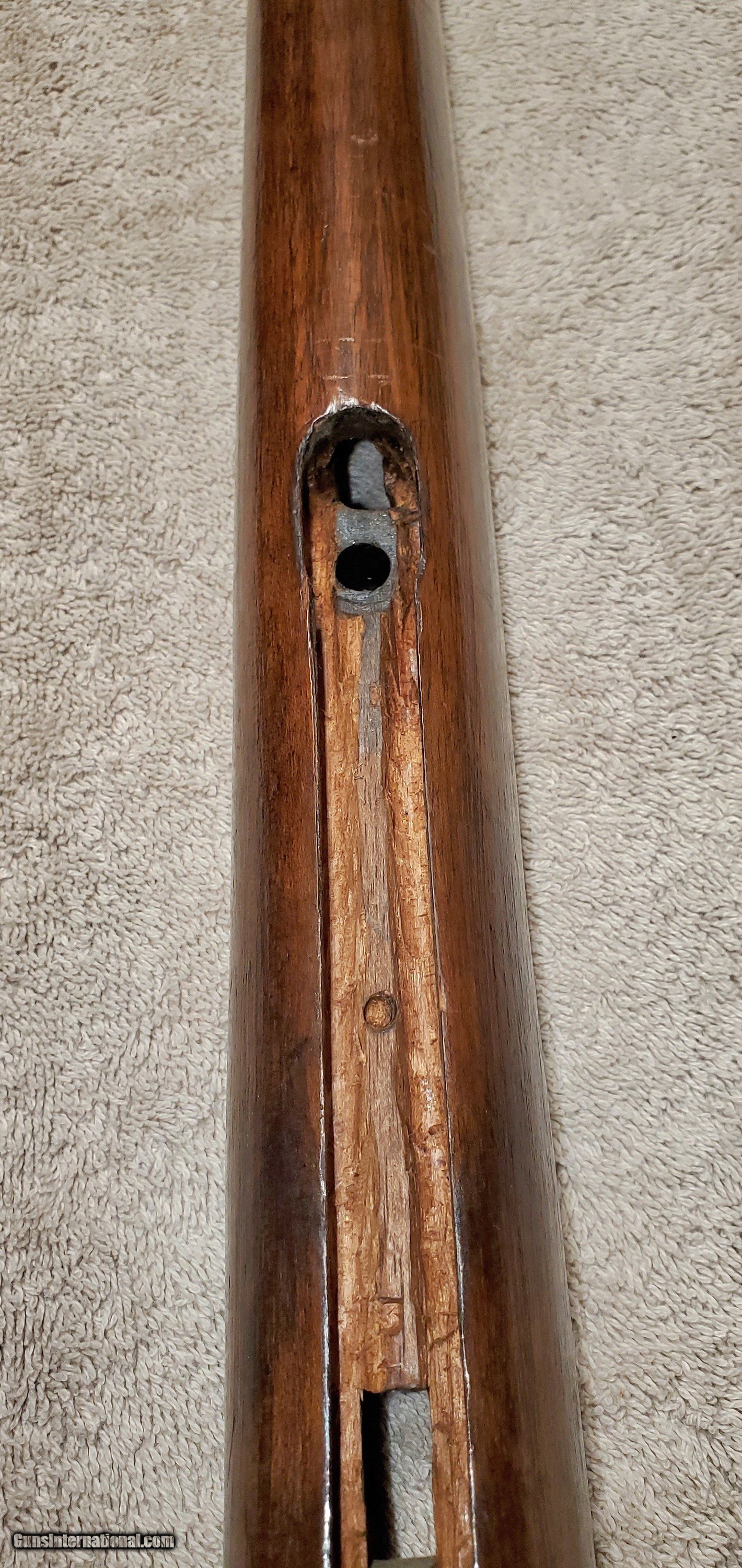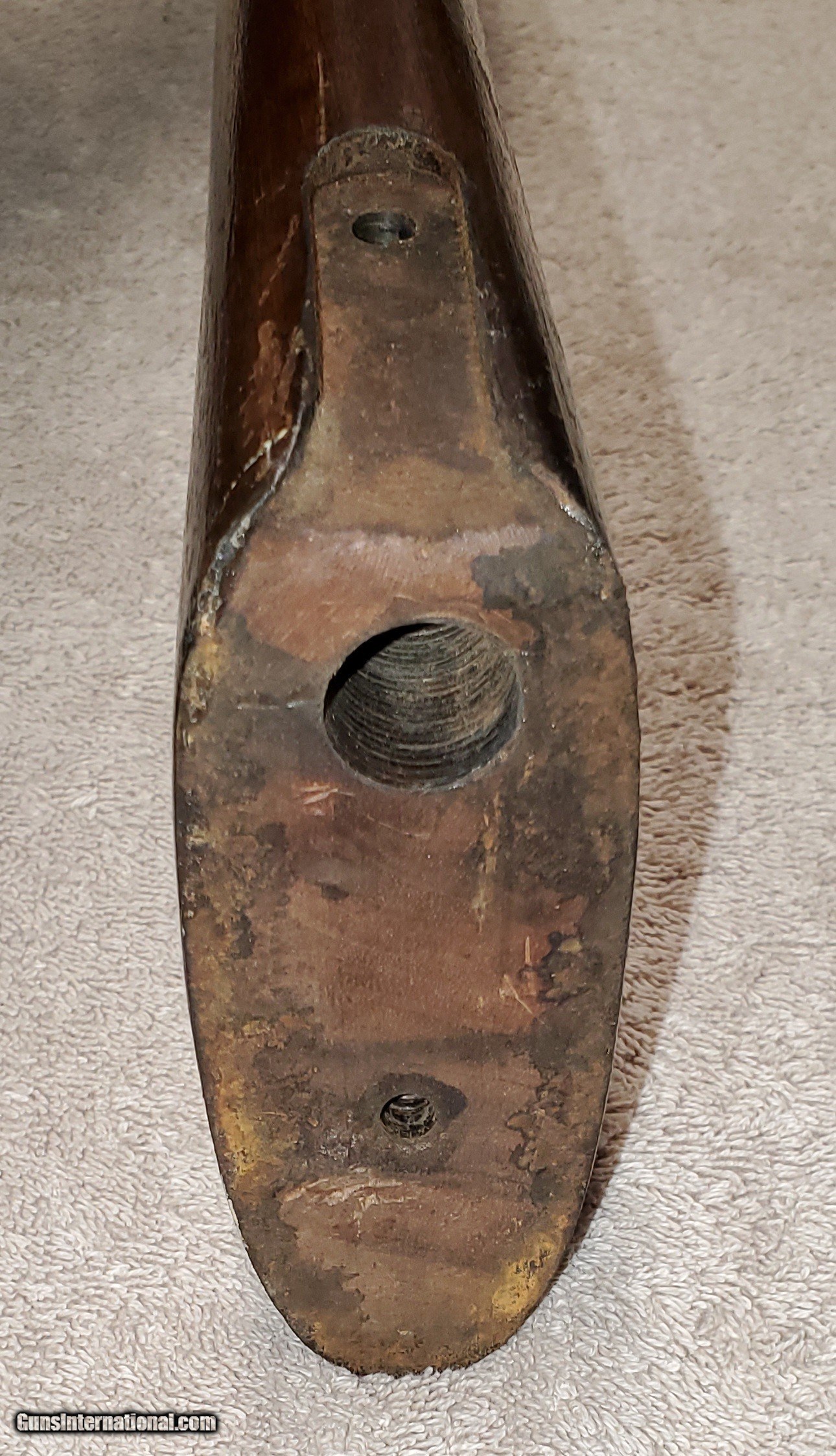 Description: Mauser Infanterie-Gewehr 71 stock assembly Full stock, butt plate, barrel bands and springs, nose cap. Wood appears to be in good condition, maybe sanded at some point. I don’t see any cracks or splits. It has been altered when previous owner converted rifle into a lamp. Butt has been drilled into the receiver area as well as trigger area was altered to run the wires. Stock looks like it can still be used as a shooter. Butt plate is not original to rifle and comes with one screw. Rest of the metal parts are in good condition. It has some kind of varnish applied to wood and parts that can be scrubbed off. s/n 7369L Buyer pays actual shipping cost Will accept money order or cashier's check SOLD Rifle Caliber: 11x60mm Mauser |