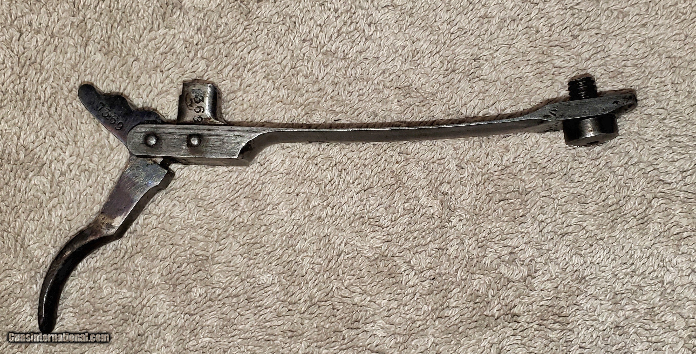 Description: Mauser Infanterie-Gewehr 71 trigger and spring Nice condition, comes with spring and screw. It has some kind of varnish that can be scrubbed off. s/n 7369L Buyer pays actual shipping cost Will accept money order or cashier’s check SOLD Rifle Caliber: 11x60mm Mauser |