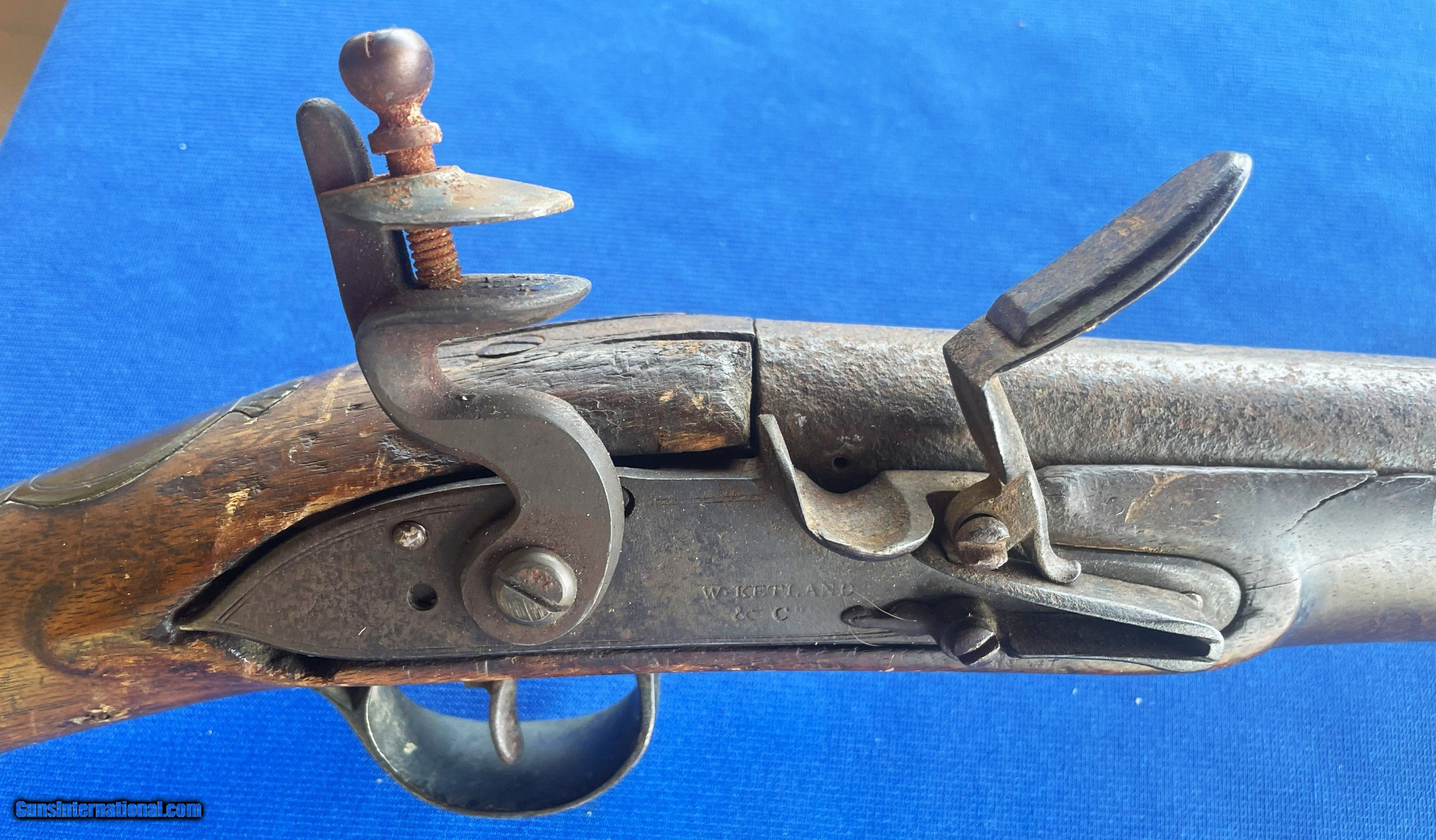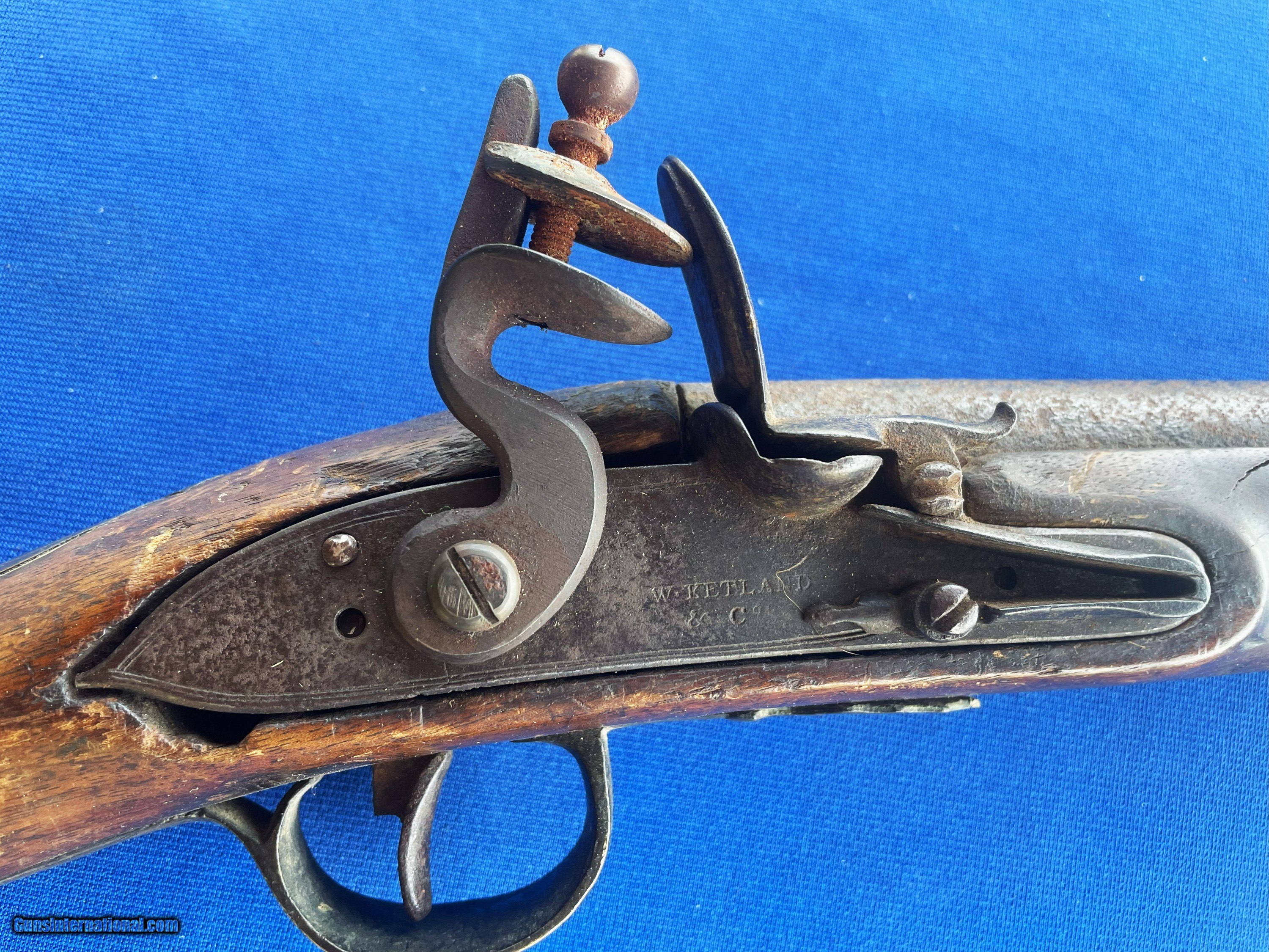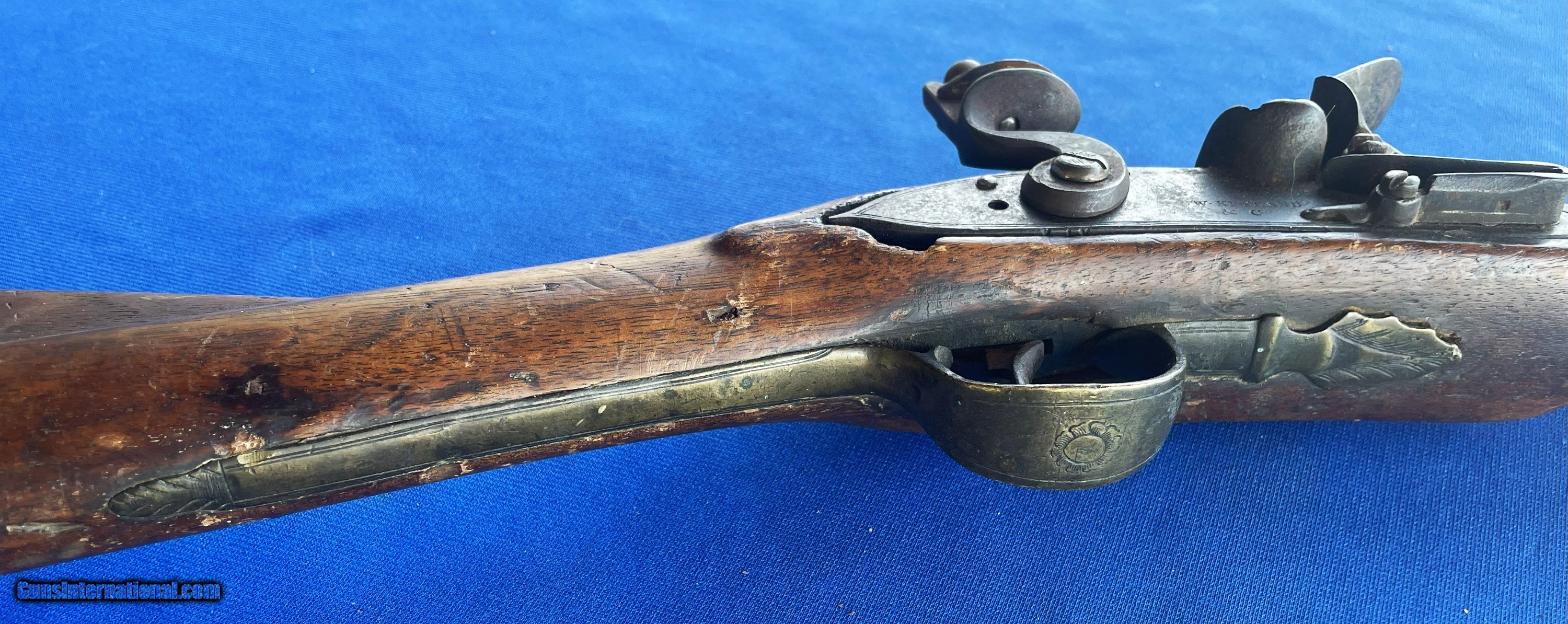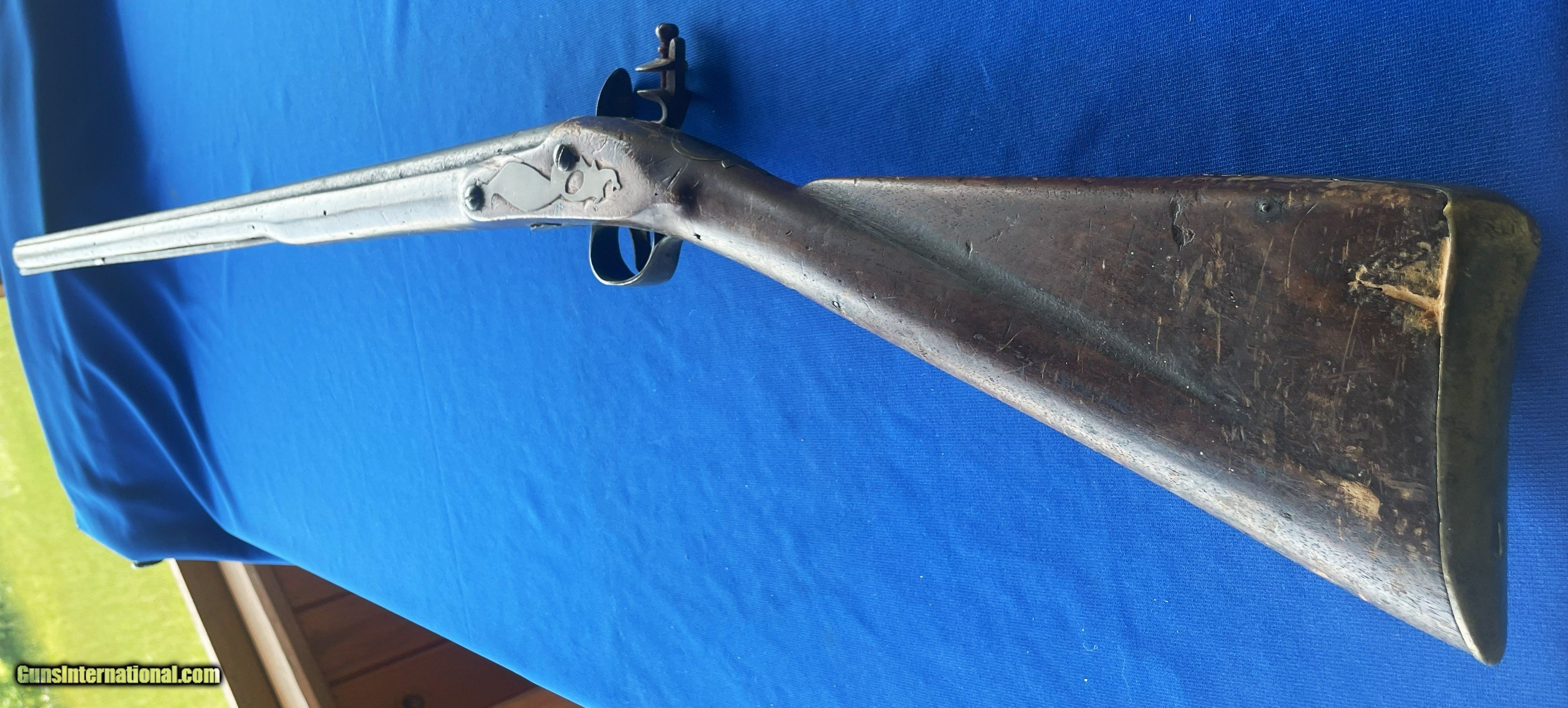 Description: FLINTLOCK 1790 ERA .45 CALIBER FOWLER MUSKET PROJECT, PARTS or DISPLAY. POSSIBLY A NATIVE AMERICAN TRADE GUN or A VERY NEGLECTED MILITIA MUSKET ? LOCK MARKED "KETLAND" ABOUT 51" LONG WITH 35 1/2" BARREL WITH ENGLISH PROOFS. FULL LENGTH STOCK FITTED WITH ENGRAVED BRASS TRIGGER GUARD, MONOGRAM PLATE & BUTTPLATE. FOR RESTORATION, PARTS or EXCELLENT OVER THE MANTEL DISPLAY GUN. SELLING AS PICTURED FROM A NEW ENGLAND COLLECTION FOUND YEARS AGO IN THE ATTIC OF A CHAMPLAIN VALLEY VERMONT FARM HOUSE. THIS MUST BE SOLD ASAP. OFFERS WELCOME ! $55.00 S&H DIRECT TO YOU ANYWHERE IN THE U.S. SOLD Rifle Caliber: .45 |