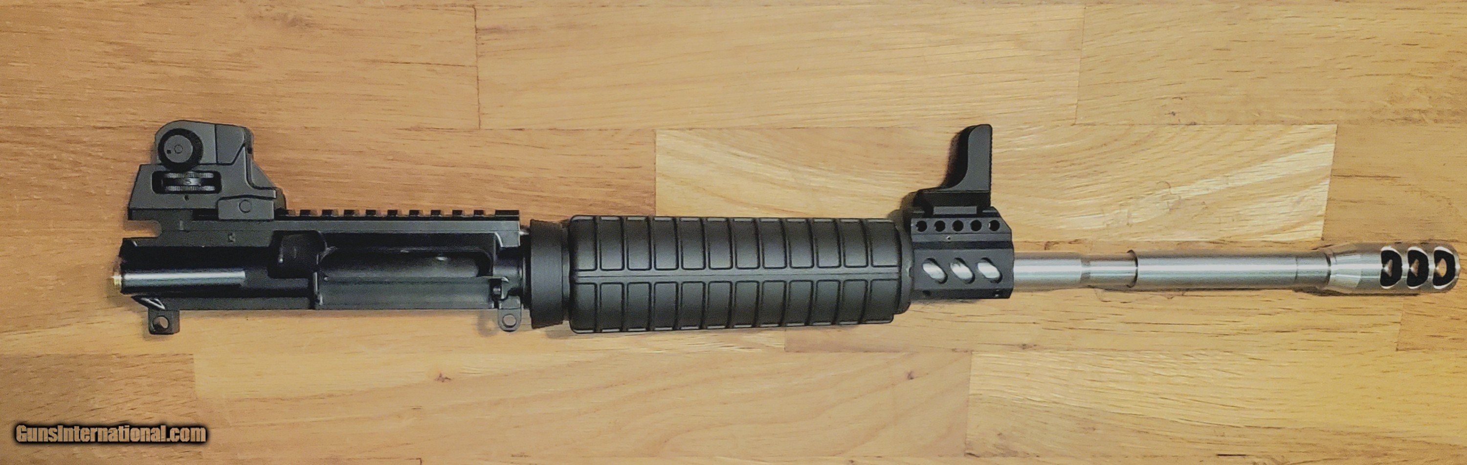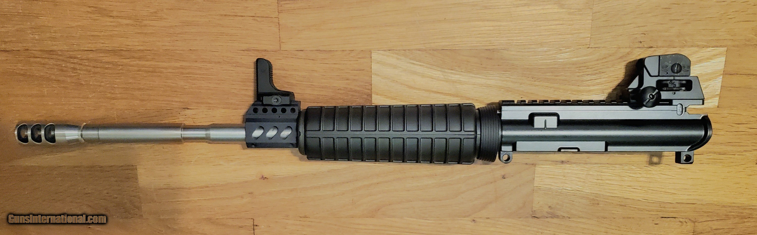 Description: AR15 A2 style flat top upper and barrel assembly, black finish (no dust cover or forward assist, .45 Colt case fills the hole). 16" carbine heavy profile 1-8 barrel (.300 Blackout caliber) with flash hider, CAR style hand guard, UTG rail mount front sight and rear sights. Clamp on railed gas block. Does not include BCG or charging handle. In excellent condition has not been shot much (less than 200 rounds) , assembled by seller in 2018. Sale not allowed in Washington state. Please check your state laws prior to purchase. Sold as is Buyer pays actual shipping cost Accept cashiers check and Paypal. SOLD Rifle Caliber: .300 AAC Blackout |