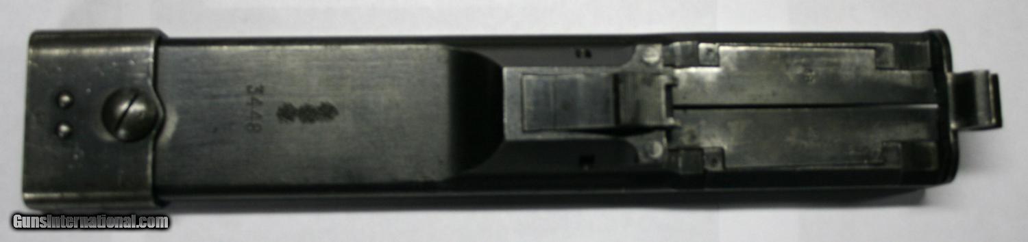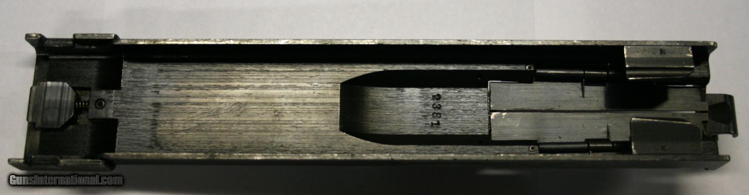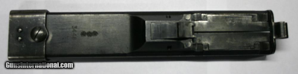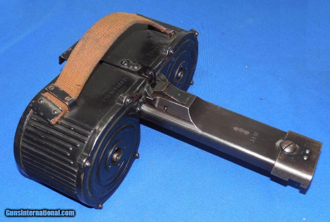 Description: SOLD / On Hold / Pending Funds / original WWII German MG 34 Trommelhalter with MG 15 Saddle Drum, the top cover gate and all spring-loaded parts are functional, manufacturer's markings above the serial number have been partially obliterated, the remaining markings E/63 on the bottom legs and Waffenampt WaA437 on the top cover latch are clear and visible. This German Saddle Drum Magazine for the MG 15 that comes with the cover was also used with the MG34 and held 75 rounds. The magazine comes with original WWII marking and Canvas Transport Strap. The magazine is code wa42 and serial numbered 740621. The overall condition on this set is very good - very good plus. Inv.: # G 3010 SOLD |