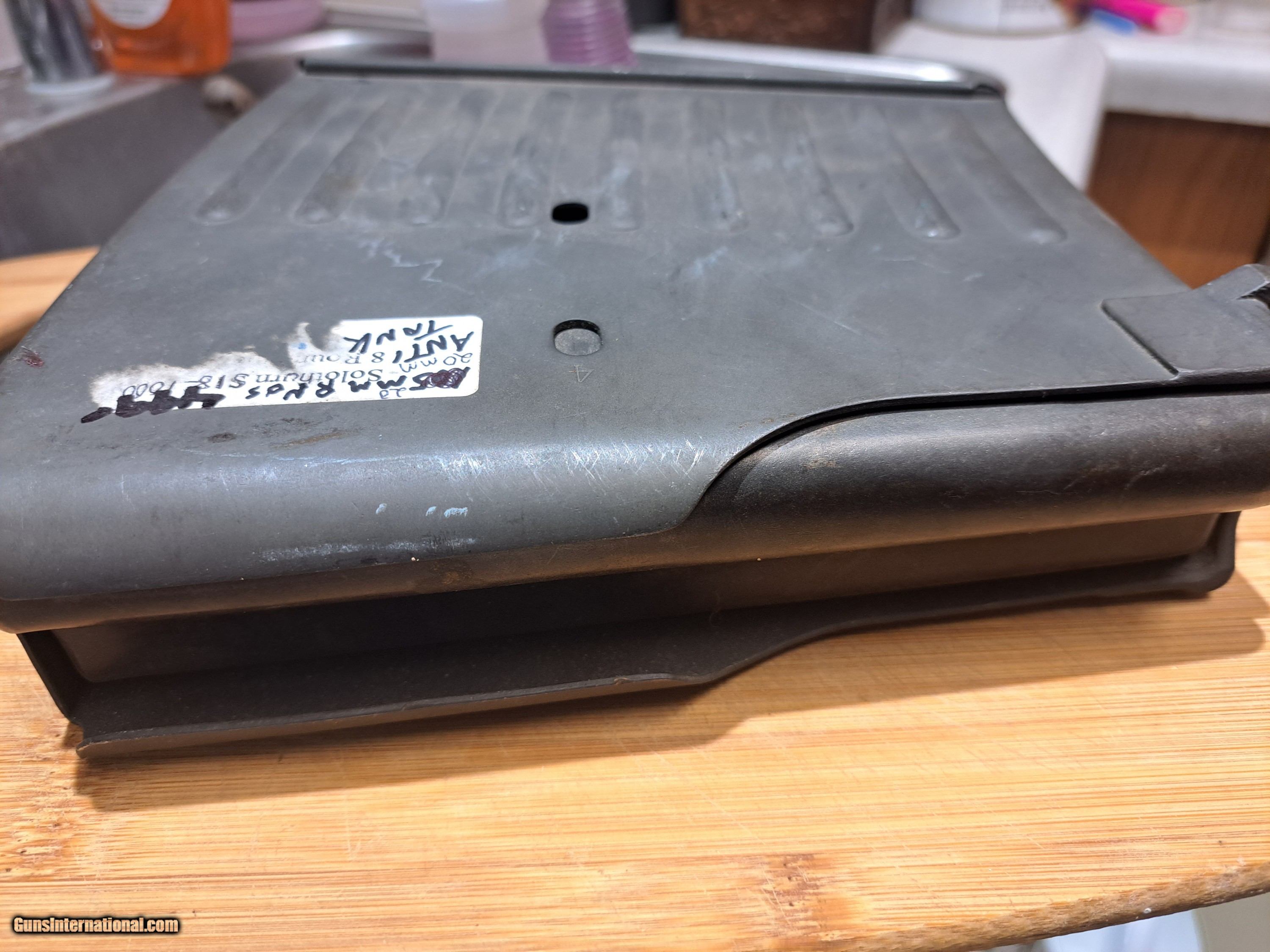 Description: Here we have a solothurm S18-1000 anti tank magazine from WWII. FOR THE 20MM ROUND. holds 8 rounds in excellent condition. See photos. Shipping at $30.00. Postal money orders. Thanks SOLD |