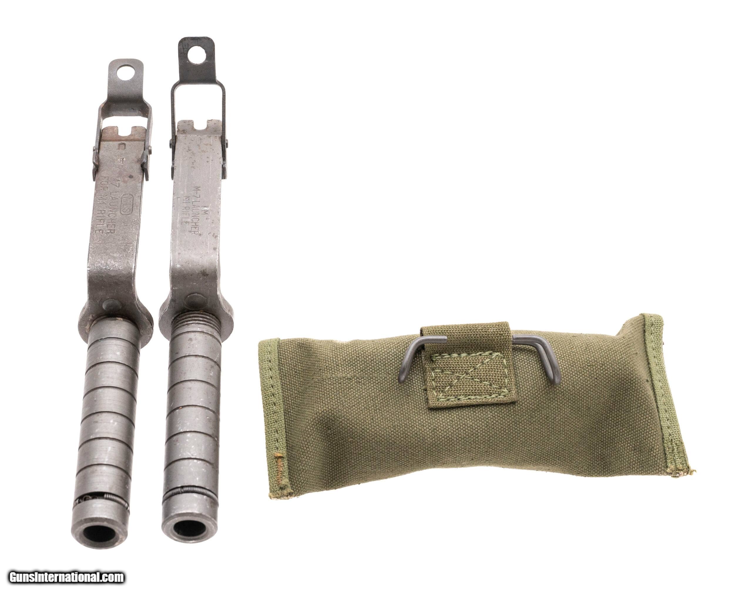 Description: "Lot of 2 M7 Grenade Launchers for the M1 Garand rifle. One was made by Mitchell & Smith (MLS) & the other was made by Knapp-Monarch (KM). Also included is one grenade sight for the M7 in its original factory wrap with instructions & a 1944 dated canvas carrying case. Price: $200.00 Contact Seller |