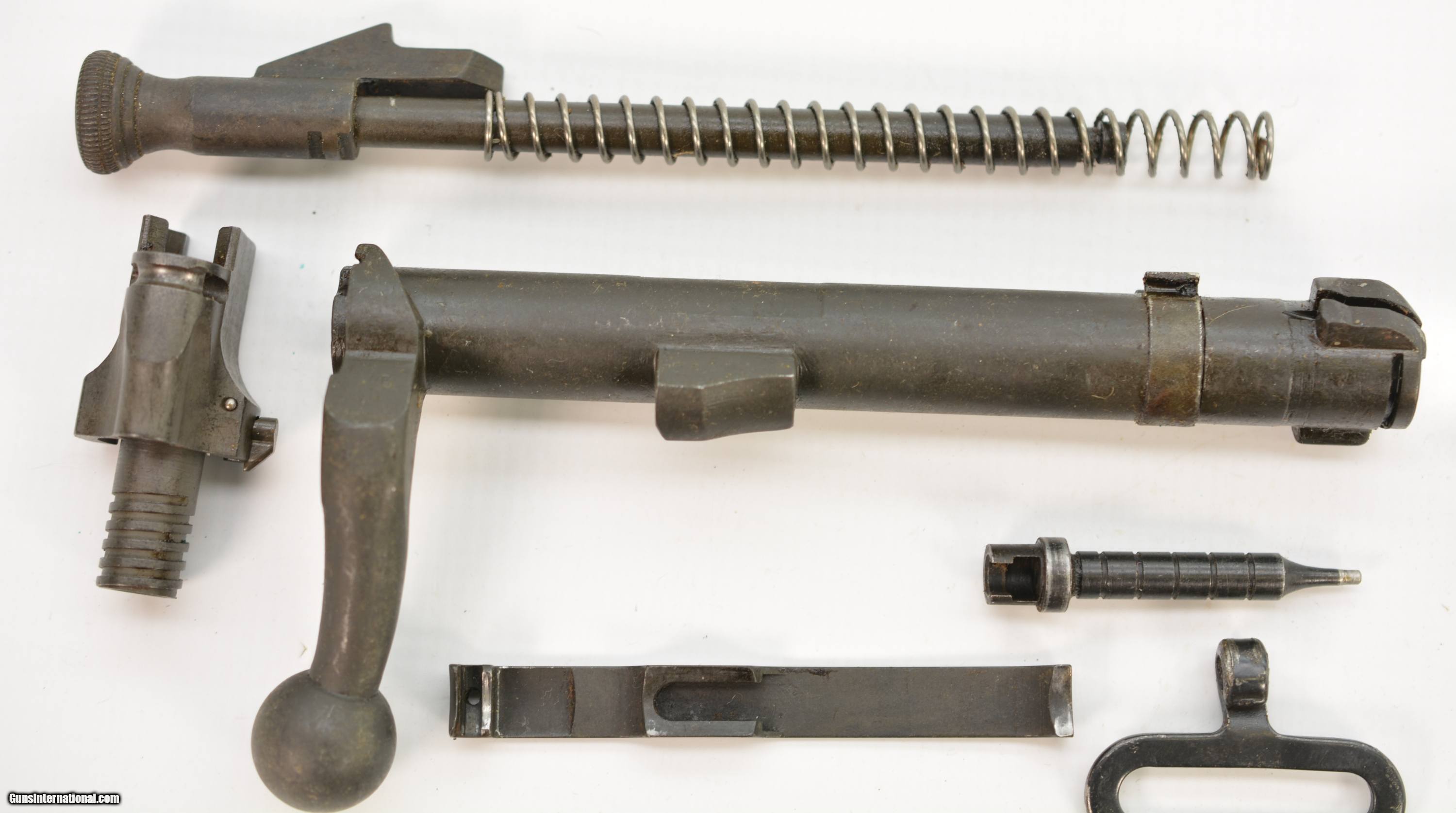 Description: 10 total parts. bolt body, striker, sleeve, broken shell extractor, extractor, combination tool, firing pin, front sight cover, sling swivel and handguard spring. Parts range from used, good condition to NOS. SOLD Manufacturer: Spfld Model: 1903 |