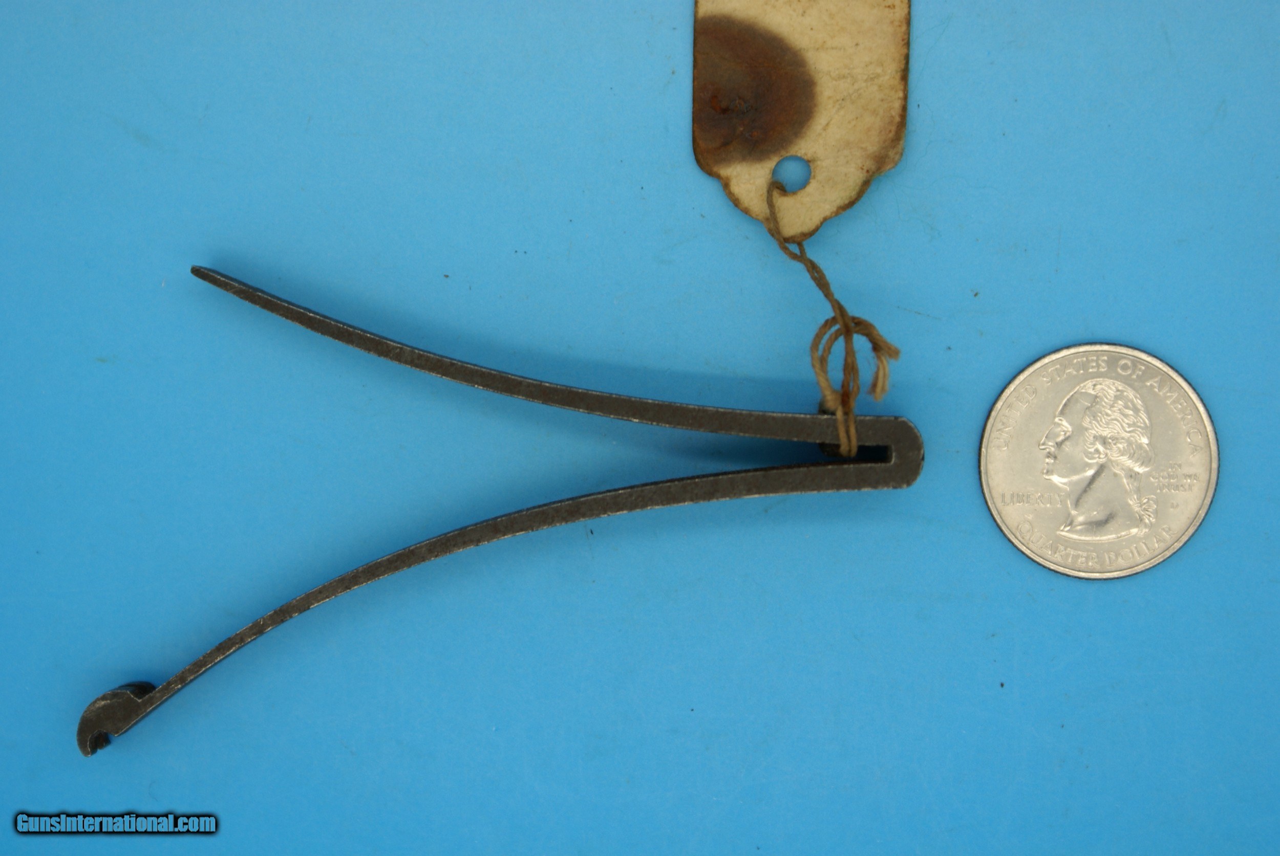 Description: An ORIGINAL MAINSPRING for a SHARPS & HANKINS, CIVIL WAR ERA, CARBINE or RIFLE. This is an ORIGINAL part. DIMENSIONS: 3.55" Overall Length .46" Width at Base CONDITION: VERY GOOD with a dark age patina. SOLD |