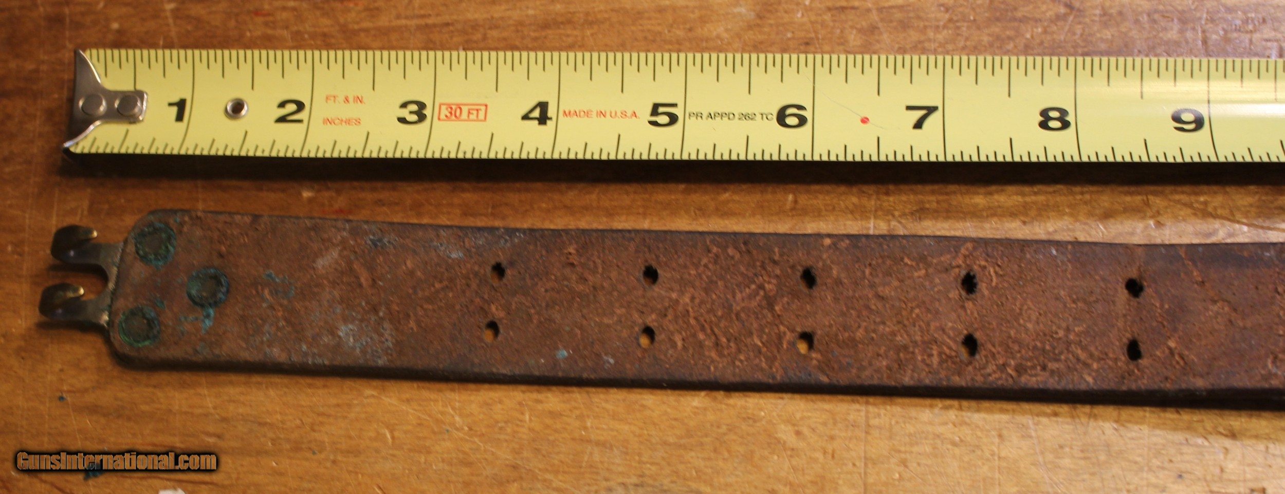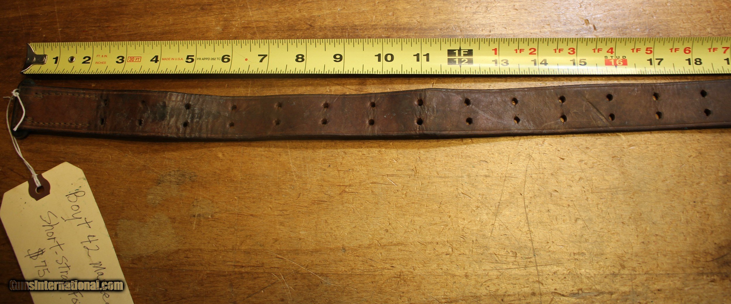 Description: Got an Original U.S. WWII M1907 Pattern Boyt 42 Leather Short Sling Section with Brass Hardware for M1 Garand Standard issue 1907 pattern sling used on the 1903 Springfield rifle and the M1 Garand Rifle made famous as the standard rifle of the U.S. military from WW2 to just before Vietnam. M1907 WWII Leather Short Strap Sling Section or Part marked and dated Boyt 42. The Standard U.S. service rifle Sling at the time of the adoption of the M1917 "Enfield" rifle was the M1907 leather sling used with the M1903 Springfield. The M1907 Sling was adopted for use with the M1 Garand rifle in 1936. The M1907 Sling was used throughout WWII with the "M1" rifle. The adjustment hooks and hardware on early M1907 Slings were made of brass, while the later WWII examples had steel hardware. (THIS SLING Section HAS BRASS HARDWARE) . The M1907 Sling was also utilized with the Winchester M1897 Trench Gun during WWI and on all WWII Winchester, Stevens, Ithaca, etc trench guns and riot guns equipped with slings. This is USGI and as you can see in the pictures. I have no idea whatever those letters and numbers mean. My military "Stuff" and "Wartime" gear knowledge is "zilch" and am using the estate where this came from as the authority. NOTE: Look close at the pictures as the item you see is the one you get. We have hundreds more World War II (WWII) and military firearms components we will be listing so please keep checking our other listings. This came from the estate of one of 5 (five) FFL/SOT Gun Smith, Gun Store. The particular estate was an avid collector of Garands and components. This is from the collection or was inventory. There will be countless other listings from this inventory over the next 4 to 5 years. We are selling for the each of the estate/stores. This is NOT a liquidation. There are no lists and will be no lists. Please check our other listings for more items Please also check our Webpage and or Facebook page at P&T Partners Shipping is included for Priority Mail Shipping is NOT FREE. Just included. Personal checks accepted, we do not hold until clear for parts. Postal Money orders also accepted, Credit card by PHONE only and there is 3.5% for use of the credit card. SOLD |