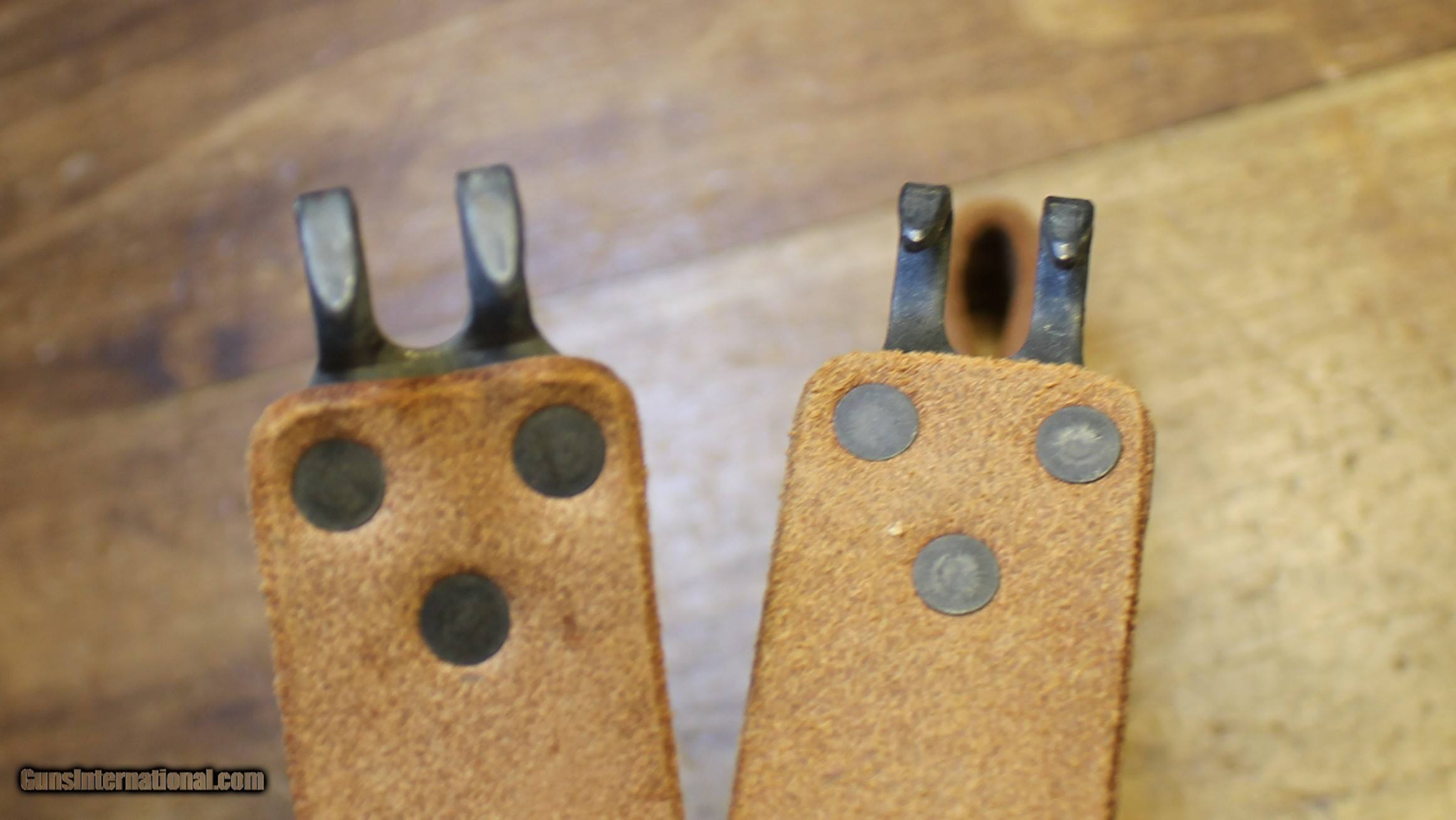 Description: Got a WWII WW2 USGI Original U.S. WWII M1907 Pattern Milsco 44 Leather Sling. Standard issue 1907 pattern sling used on the 1903 Springfield rifle and the M1 Garand Rifle made famous as the standard rifle of the U.S. military from WW2 to just before Vietnam. M1907 WWII Leather Sling marked and dated MILSCO 1944. The Standard U.S. service rifle Sling at the time of the adoption of the M1917 "Enfield" rifle was the M1907 leather sling used with the M1903 Springfield. The M1907 Sling was adopted for use with the M1 Garand rifle in 1936. The M1907 Sling was used throughout WWII with the "M1" rifle. The adjustment hooks and hardware on early M1907 Slings were made of brass, while the later WWII examples had steel hardware. (THIS SLING HAS BRASS HARDWARE) . The M1907 Sling was also utilized with the Winchester M1897 Trench Gun during WWI and on all WWII Winchester, Stevens, Ithaca, etc trench guns and riot guns equipped with slings. This is USGI and as you can see in the pictures. I have no idea whatever those letters and numbers mean. My military "Stuff" and "Wartime" gear knowledge is "zilch" and am using the estate where this came from as the authority. NOTE: Look close at the pictures as the item you see is the one you get. We have hundreds more World War II (WWII) and military firearms components we will be listing so please keep checking our other listings. This came from the estate of one of 5 (five) FFL/SOT Gun Smith, Gun Store. The particular estate was an avid collector of Garands and components. This is from the collection or was inventory. There will be countless other listings from this inventory over the next 4 to 5 years. We are selling for the each of the estate/stores. This is NOT a liquidation. There are no lists and will be no lists. Please check our other listings for more items Please also check our Webpage and or Facebook page at P&T Partners Shipping is $10.00 for Priority Mail Personal checks accepted, we do not hold until clear for parts. Postal Money orders also accepted, Credit card by PHONE only and there is 3.5% for use of the credit card. SOLD |
