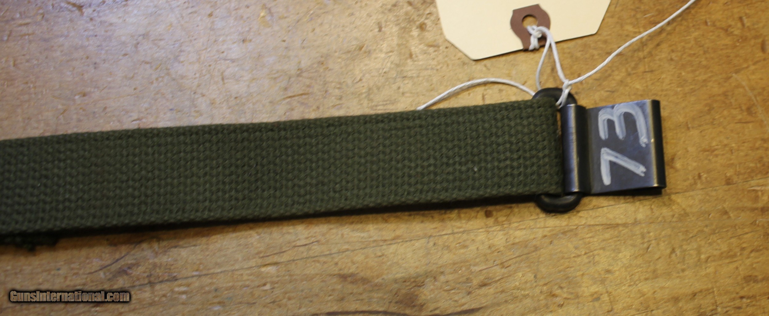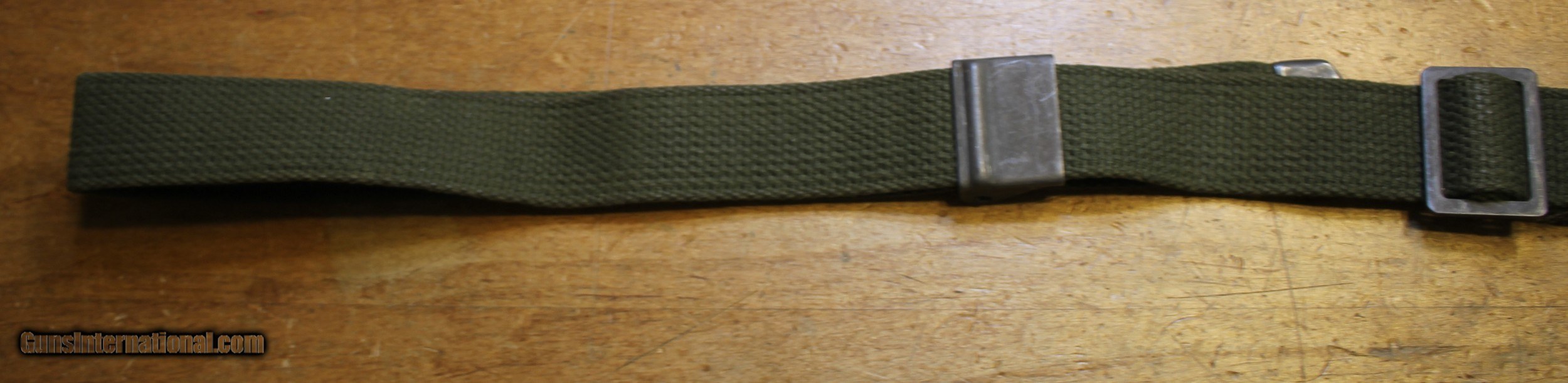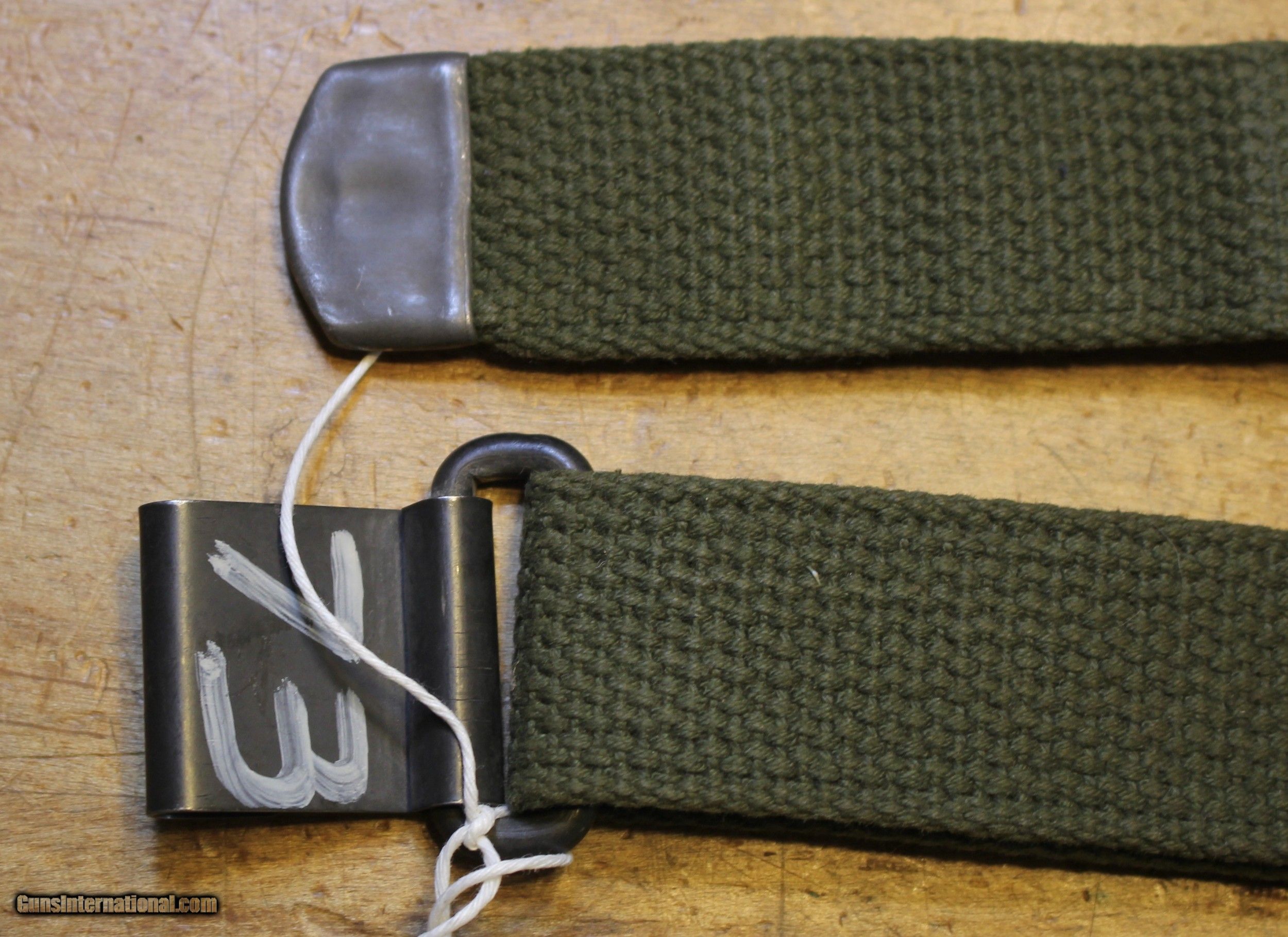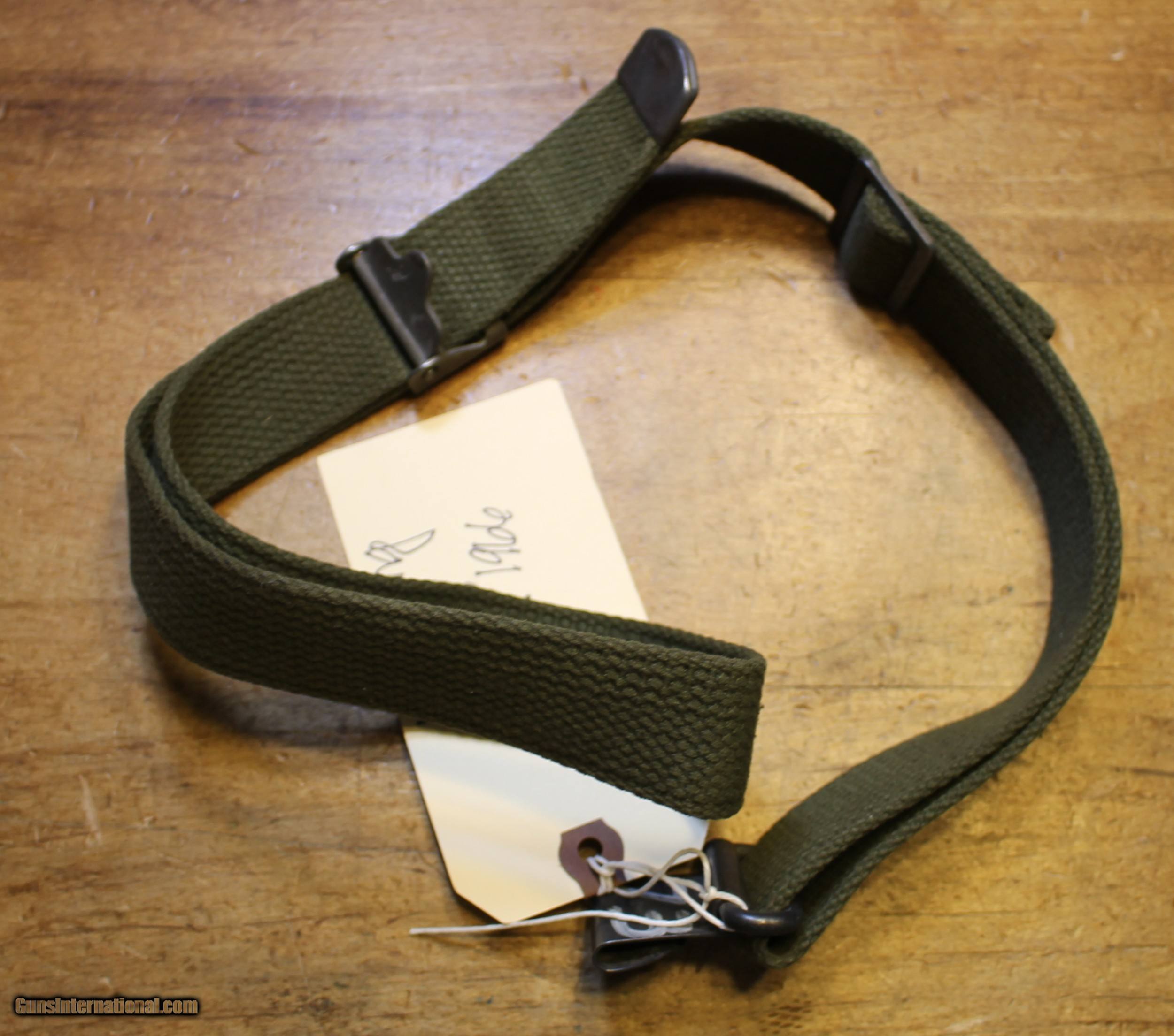 Description: Original USGI Cotton MRT (Mildew Resistance Treatment) January 1965 dated M1 Garand \ Springfield Rifle Sling. This sling would have also been appropriate for the 1903 , 1903A3, and 1903A4 series of rifles also. The pictures are of the actual rifle sling you will receive. We do NOT use "representations" This is USGI and as you can see in the pictures. I have no idea whatever those letters and numbers mean. My military "Stuff" and "Wartime" gear knowledge is "zilch" and am using the estate where this came from as the authority. NOTE: Look close at the pictures as the item you see is the one you get. We have hundreds more World War II (WWII) and military firearms components we will be listing so please keep checking our other listings. This came from the estate of one of 5 (five) FFL/SOT Gun Smith, Gun Store. The particular estate was an avid collector of Garands and components. This is from the collection or was inventory. There will be countless other listings from this inventory over the next 4 to 5 years. We are selling for the each of the estate/stores. This is NOT a liquidation. There are no lists and will be no lists. Please check our other listings for more items Please also check our Webpage and or Facebook page at P&T Partners Shipping is $8.50 for Priority Mail Personal checks accepted, we do not hold until clear for parts. Postal Money orders also accepted, Credit card by PHONE only and there is 3.5% for use of the credit card. SOLD |