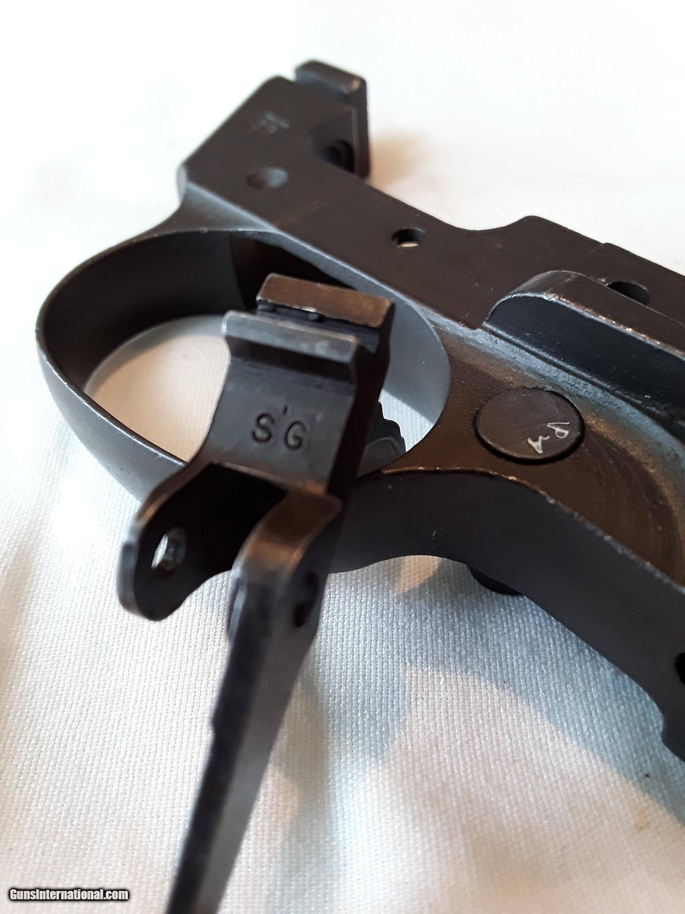 Description: This is a correct S'G' trigger group that includes a dog leg hammer. All parts are correctly marked. This housing group is correct for use until 9/43. The price includes shipping and payment may be made by PayPal F&F or USPS MO. If you have questions, call me at 228-216-4102 or email at uncleronnie43gmail SOLD |