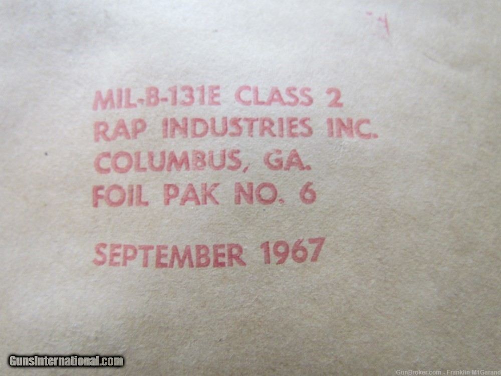 Description: ATTENTION M1 CARBINE COLLECTORS. We have 10 brand NEW M1 Carbine Barrel Band Assemblies from 1967. Never Opened! Very collectable! The factory sealed package measures: 7-1/2" x 6-1/2" x 2". These are still factory sealed. Never opened! We will not open the sealed package because we feel that it is worth more to that special collector, un-opened. The manufacture part numbers are in the pictures. You are on ten M1 Carbine Barrel Band Assemblies from 1967. You will receive all 10 for one price. Be sure to look at the pics prior to . What you see in the pictures, is what's up for sale. Feel free to ask any and all questions. We only ship in the USA via USPS. We accept USPS money orders only! Shipping will be USPS Priority at buyers expense. We will quote the shipping cost once you contact us. Contact us at M1garandbillgmail There has to be a vintage collector out there that values these historic parts from our American history. SOLD Rifle Caliber: .30 Carbine |