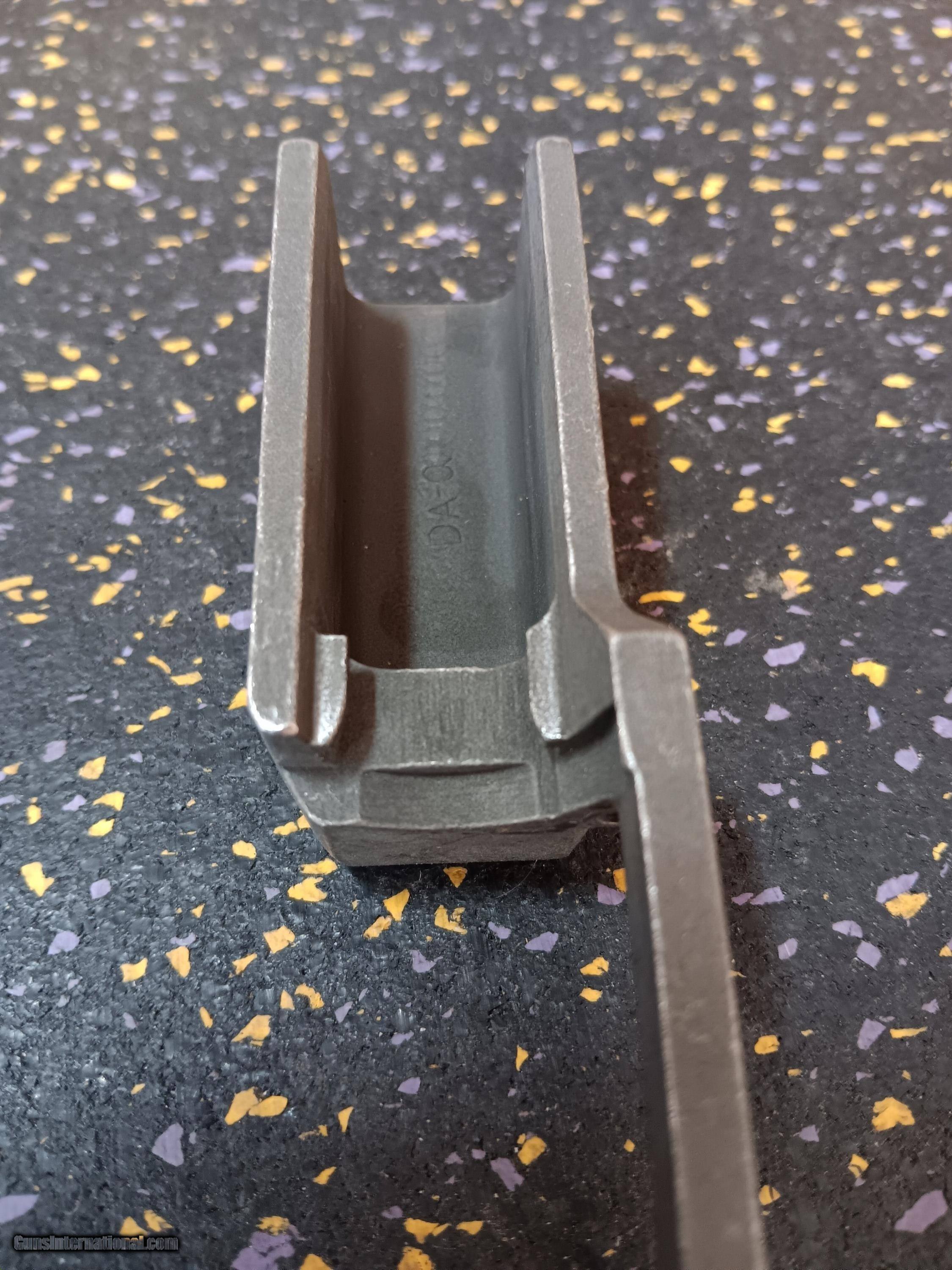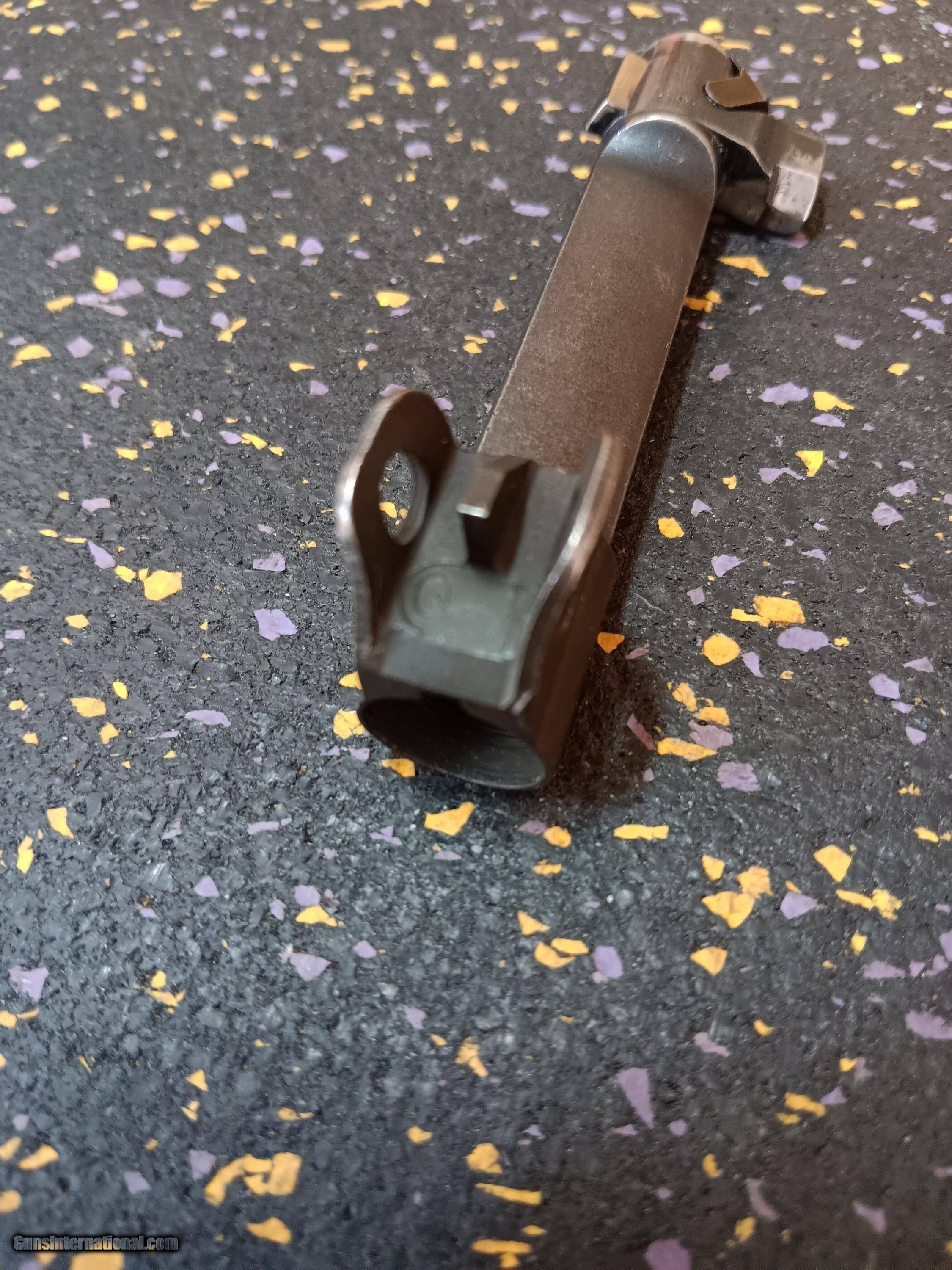 Description: Lot of Guality hardware parts. All T1 and T2. T1 slide, T1 barrel band, T2 flat bolt, T2 dogleg hammer, T2 trigger housing, T2 sear, T2 trigger and Q marked front sight SOLD Rifle Caliber: .30 Carbine |