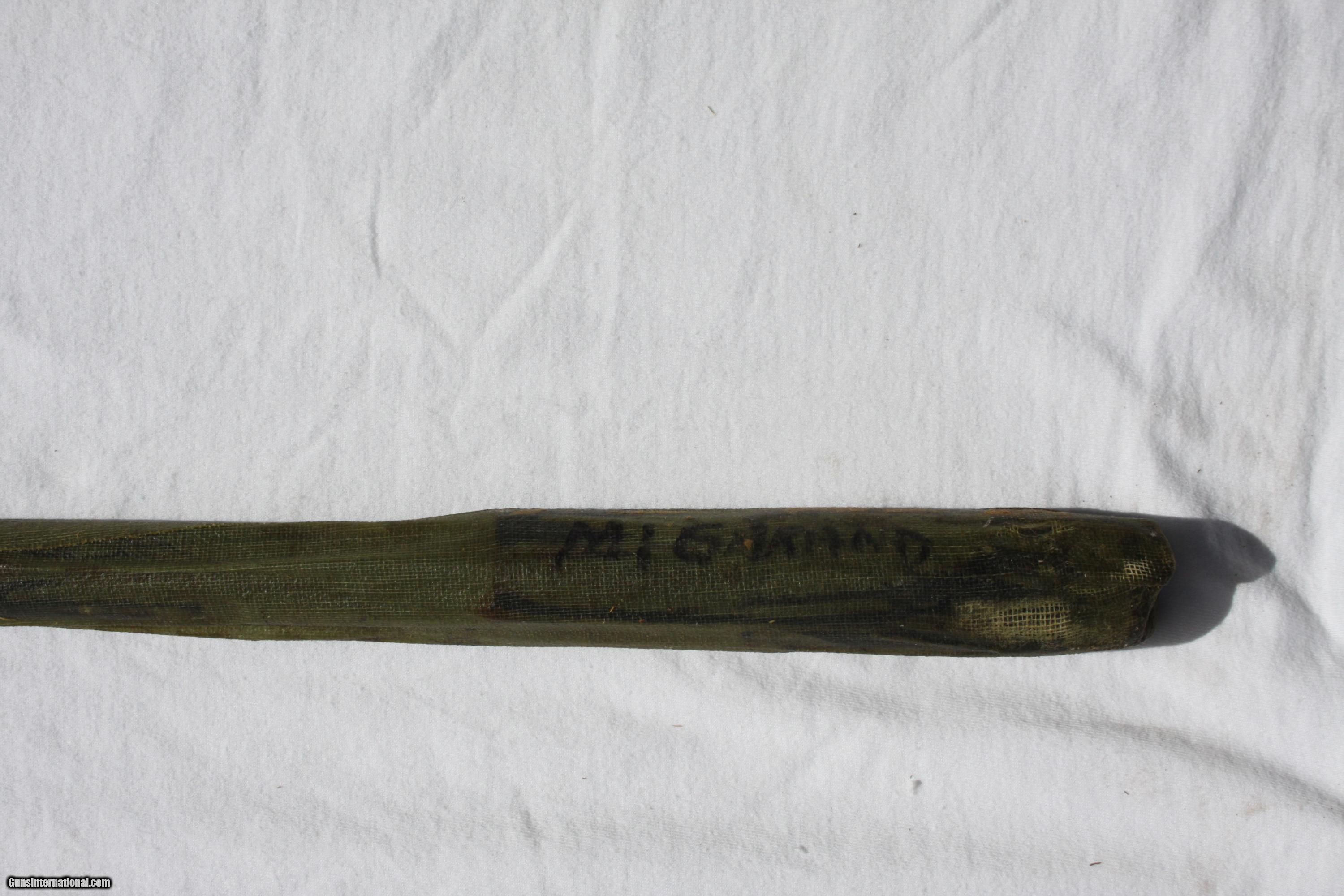Description: This listing consists of a new M1 Garand 30-06 rifle barrel. This is a post WW2 barrel manufactured by the Springfield armory. The original government wrapping was opened to determine the date of manufacture. This barrel is dated 3-52 and remains in the original cheesecloth that is covering the Springfield armory protective Cosmoline. Since the barrel is new, it is offered for sale as is with no 3 day inspection period. The accompanying photos show the barrel in its wrapping. The selling price of the barrel is $300 with free priority mail shipping and insurance. Please remit payment via a USPS money order. If you need additional information, please contact me through the Guns International system. Thank you for your interest. SOLD |