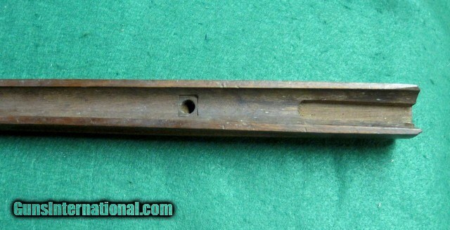 Description: Original Winchester 1885 Low Wall WINDER Musket Walnut Forend Stock Forend has no repairs. Overall condition is very good with the exception of a dark spot & some pecks of finish loss on the bottom side(see pics) Some variants have a barrel band spring like this one(usually US marked rifles) & some use a screw to attach the band. Be sure the barrel band spring is the one you need. NO RETURNS Ships only to lower 48 states. Shipping is $12. This will be added to the purchase price. No add on fees for credit cards . SOLD |