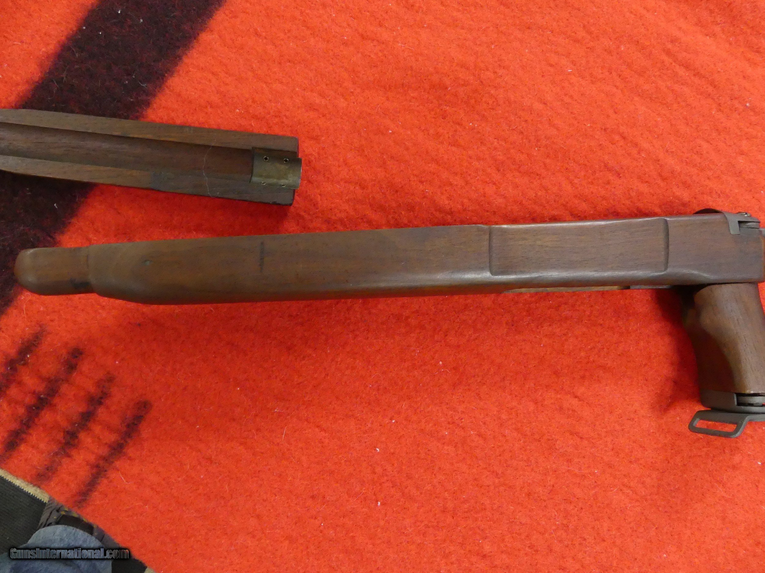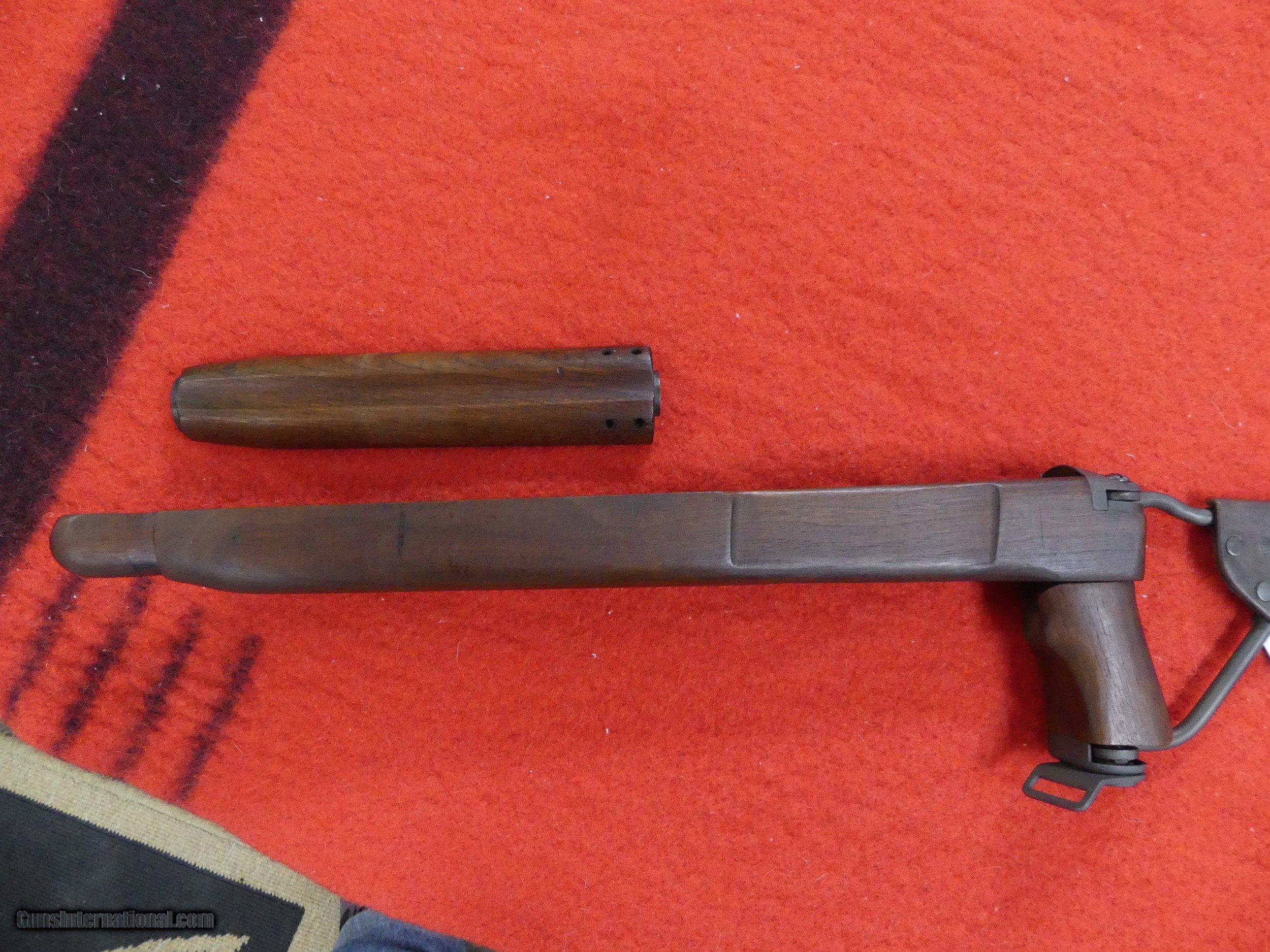 Description: This is a WWII Inland M1A1 paratrooper Carbine stock in near new condition. About the nicest that I have ever seen . Hard to upgrade this stock... It would have originally been isued with an Inland rifle, but will fit and finction with any US Military M1 Carbine. Note all of the proper markings, etc . in the pictures. I have been sitting on this stock for many years, and it is time for someone to get som use out of it.... $25 shipping in the lower 48. No FFL or C&R required. Thanks for your interest. SOLD |