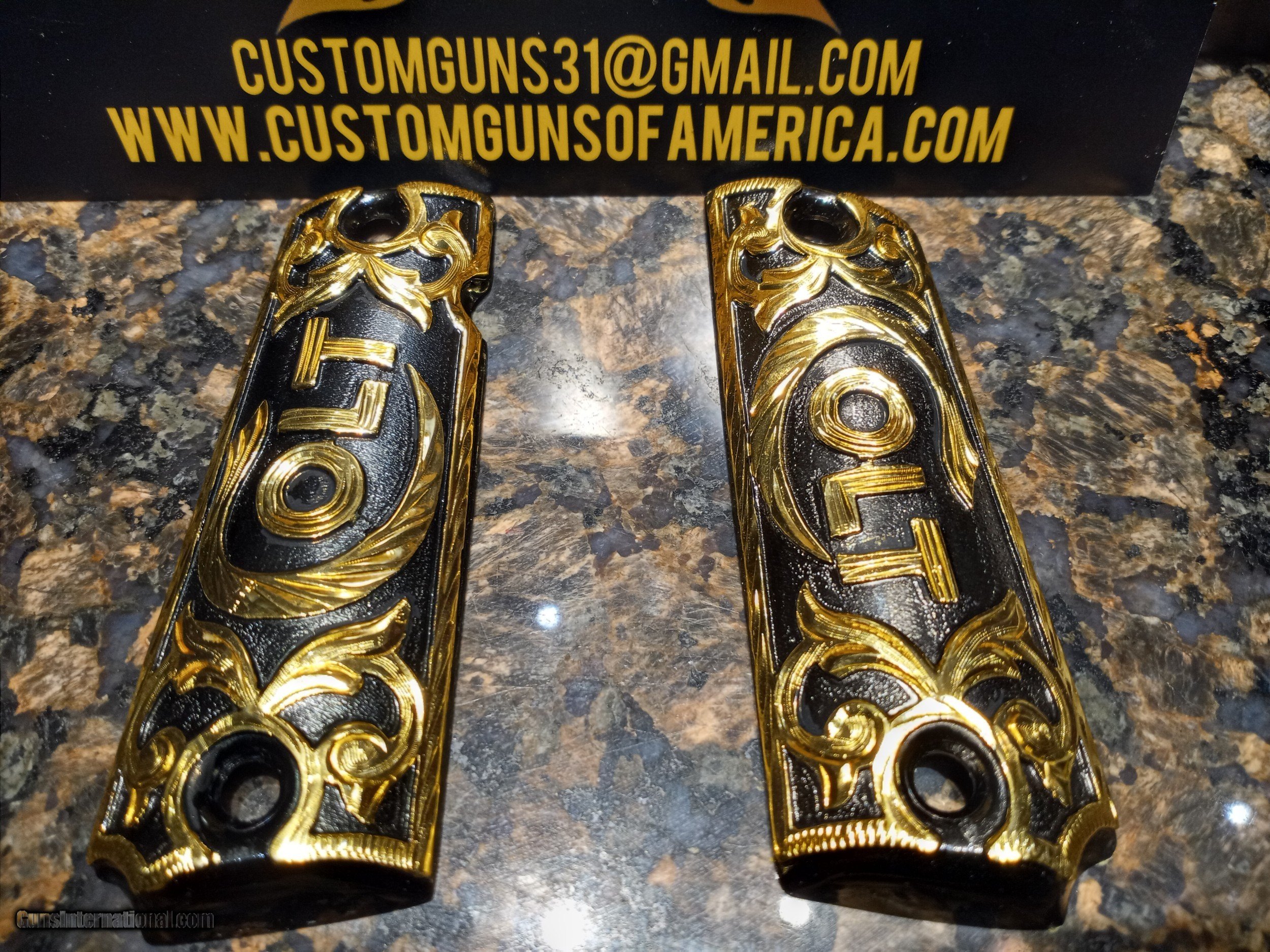 Description: Best grips 24 karat gold plated 1911 colt grips SOLD |