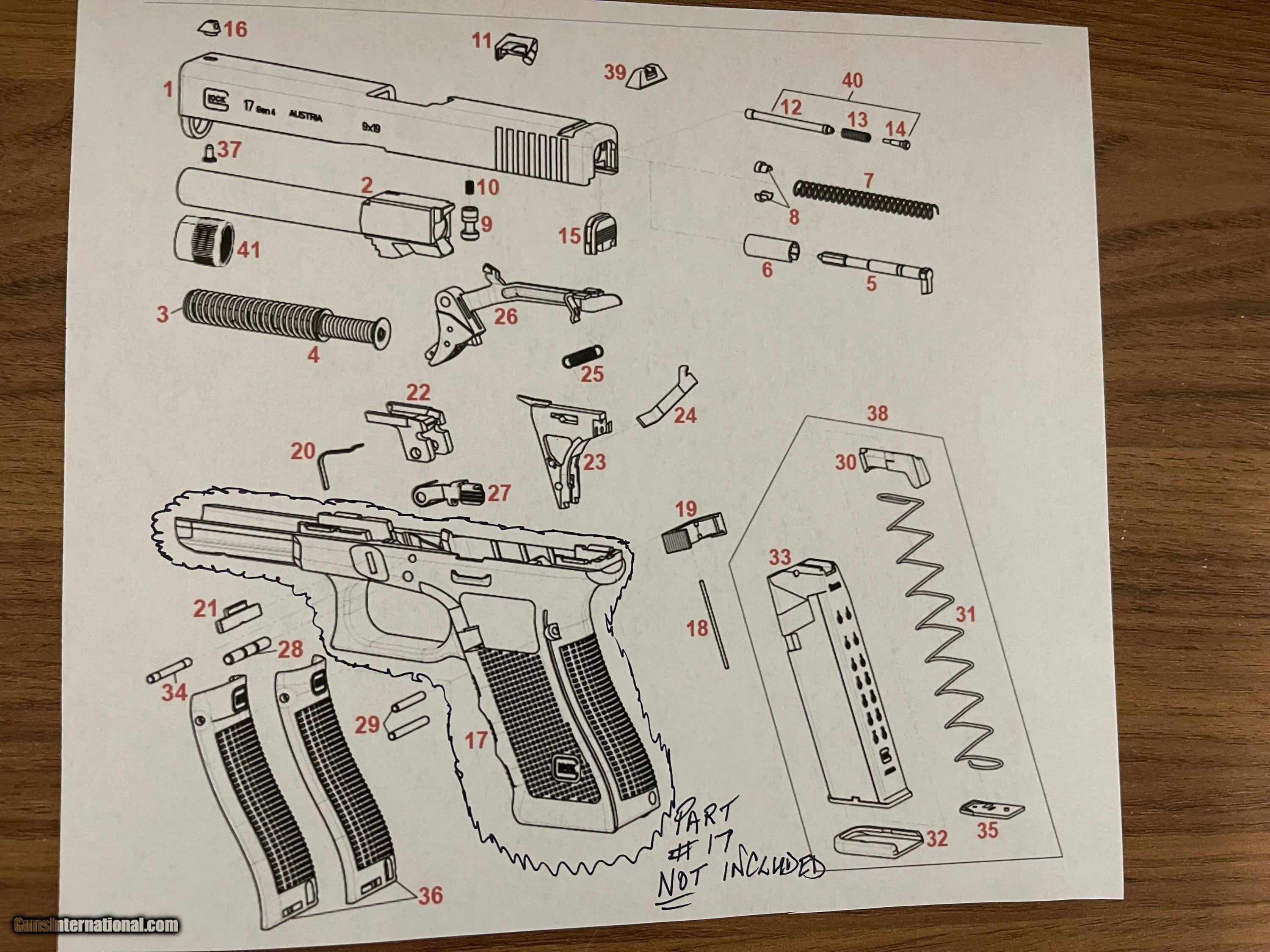 Description: Glock G44 complete parts kit (minus the Frame/Receiver). Brand New. Glock case, papers, cleaning tools, grips, magazines. SOLD Handgun Caliber: .22 Long Rifle |