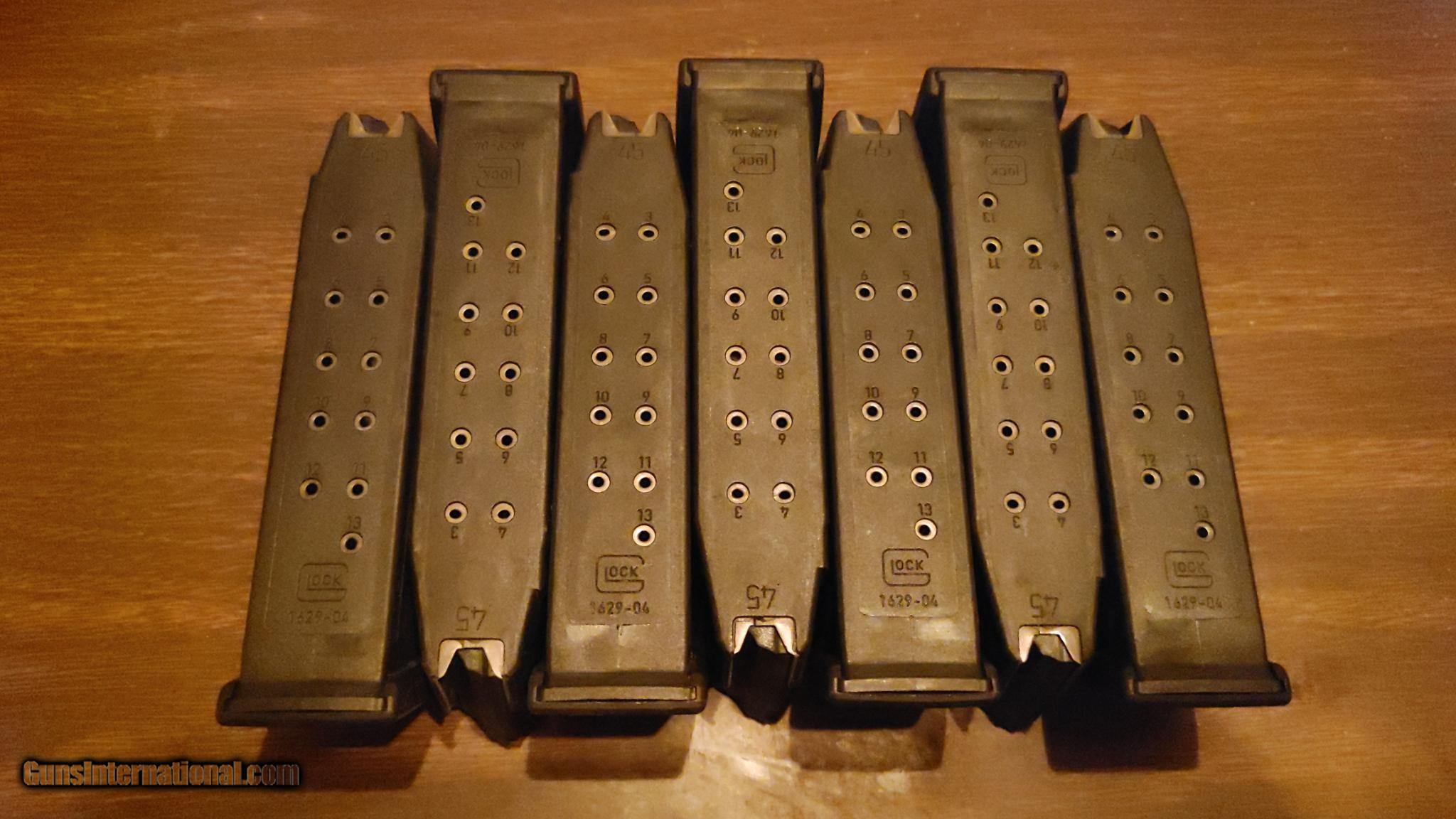 Lot of Seven (7) Used Glock 21/41 45 ACP 13 Round Magazines