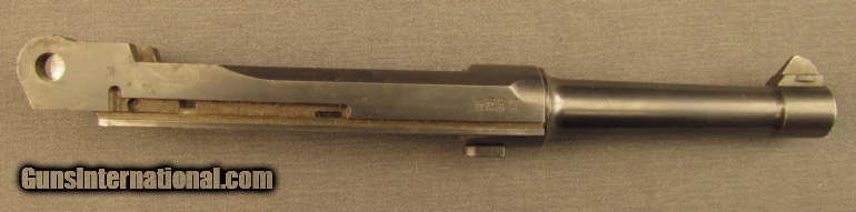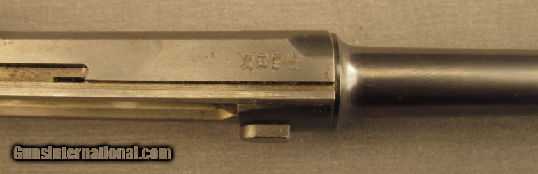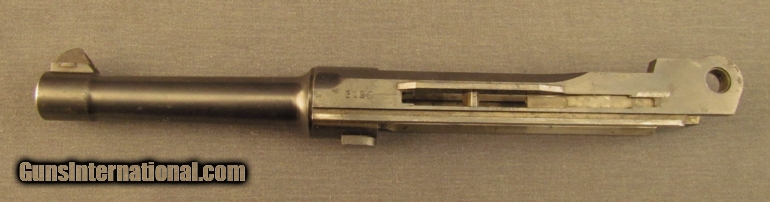 Description: S# 3126, 9 mm luger, 4 inch barrel, bright very good bore. This 1913 dated barrel extension shows four proofs on right side with serial on left. These parts show 80% blue with light stains and dried grease. Barrel has a matching number on bottom and comes complete with front sight. SOLD Manufacturer: German Model: Luger Caliber Info: 9mm Gauge Info: 9mm |