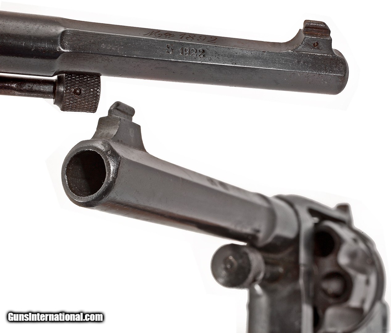 Description: I'm selling my collection. Here is an Antique French Military Ordnance St Etienne Model 1892 chambered for 8mm x 27 Lebel. Excellent condition main parts : 4.1/2" Barrel with a very good bore, Frame and 6 chambers Cylinder. All other parts screws, springs are missing. Very good project of restoration or to complete a going on project with all these rare main parts... Original factory blue rates 85%. This ordnance revolver model 1892 served reliably & successfuly for over 80 years in the french Army, Foreign Légion & Navy, those handguns were so well built and are amazingly accurate. It was still in service in the mid 1950s & 60s in Indochina & the Algerian conflict. I described it to the best of my knowledge. What you don't read in the description you might see on the pictures. Please don't ask for extra pictures. Buyer is responsible for knowing all laws pertaining to this transaction. $245 + $55 insured shipping to your door if you are over 21, payable by cashier check, P.M.O or credit card. Please have look on my other pieces. Thank you SOLD Handgun Caliber: 8mm French Ordnance (8mm Lebel Revolver) |