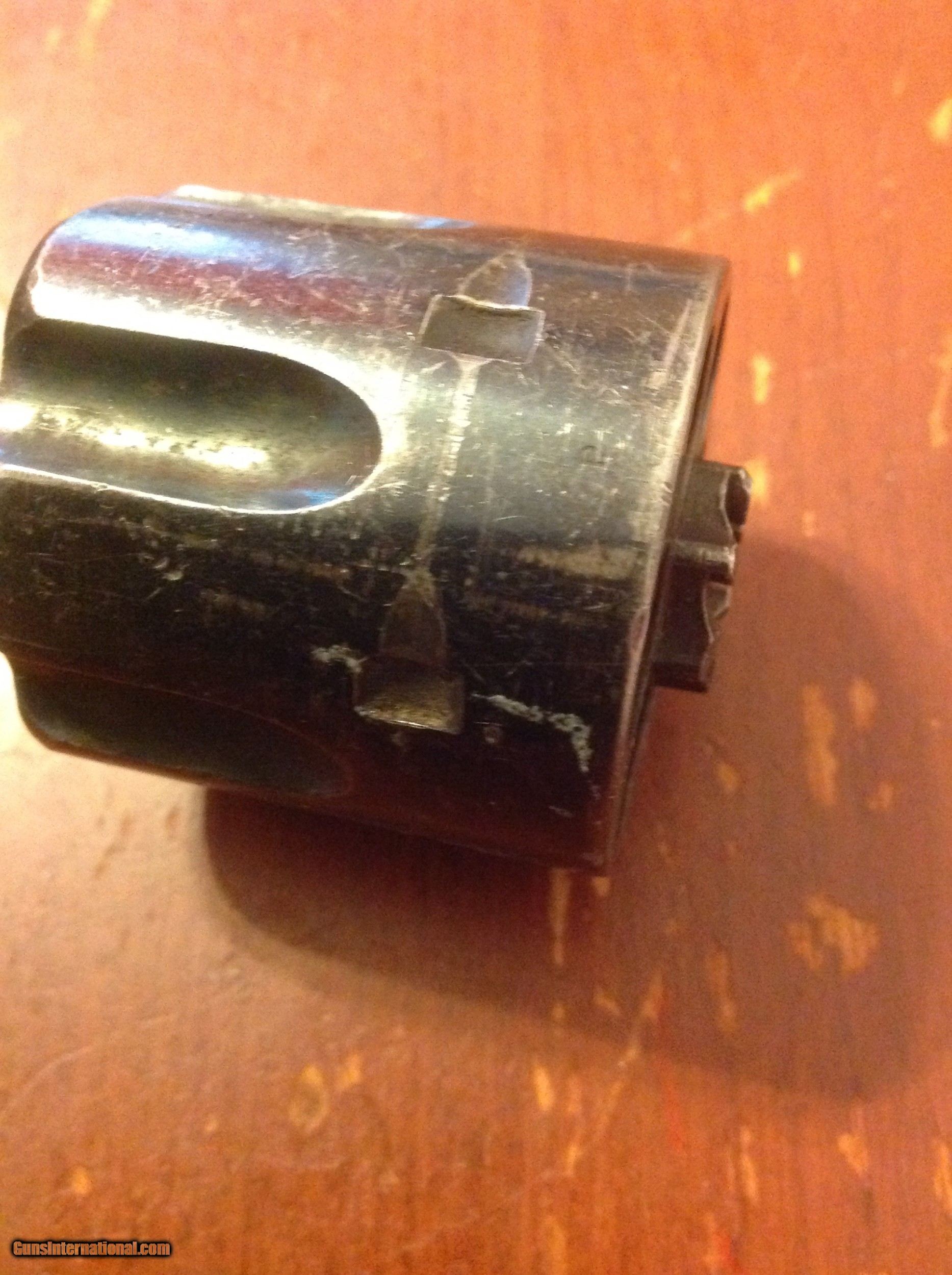 Description: Antique Colt numbered cylinder in 45 long Colt. it is in exceptional condition with most original finish. I have loaded a lot of pictures, any questions please ask. this will make you old Colt a real face lift, or make you Colt artillery worth thousands more. I have not seen one this nice for sale ever! make your Calvary or artillery a screamer and fits all first gen Colts. This is a black power cartridge cylinder not to be used with smokeless power cartridges. SOLD |