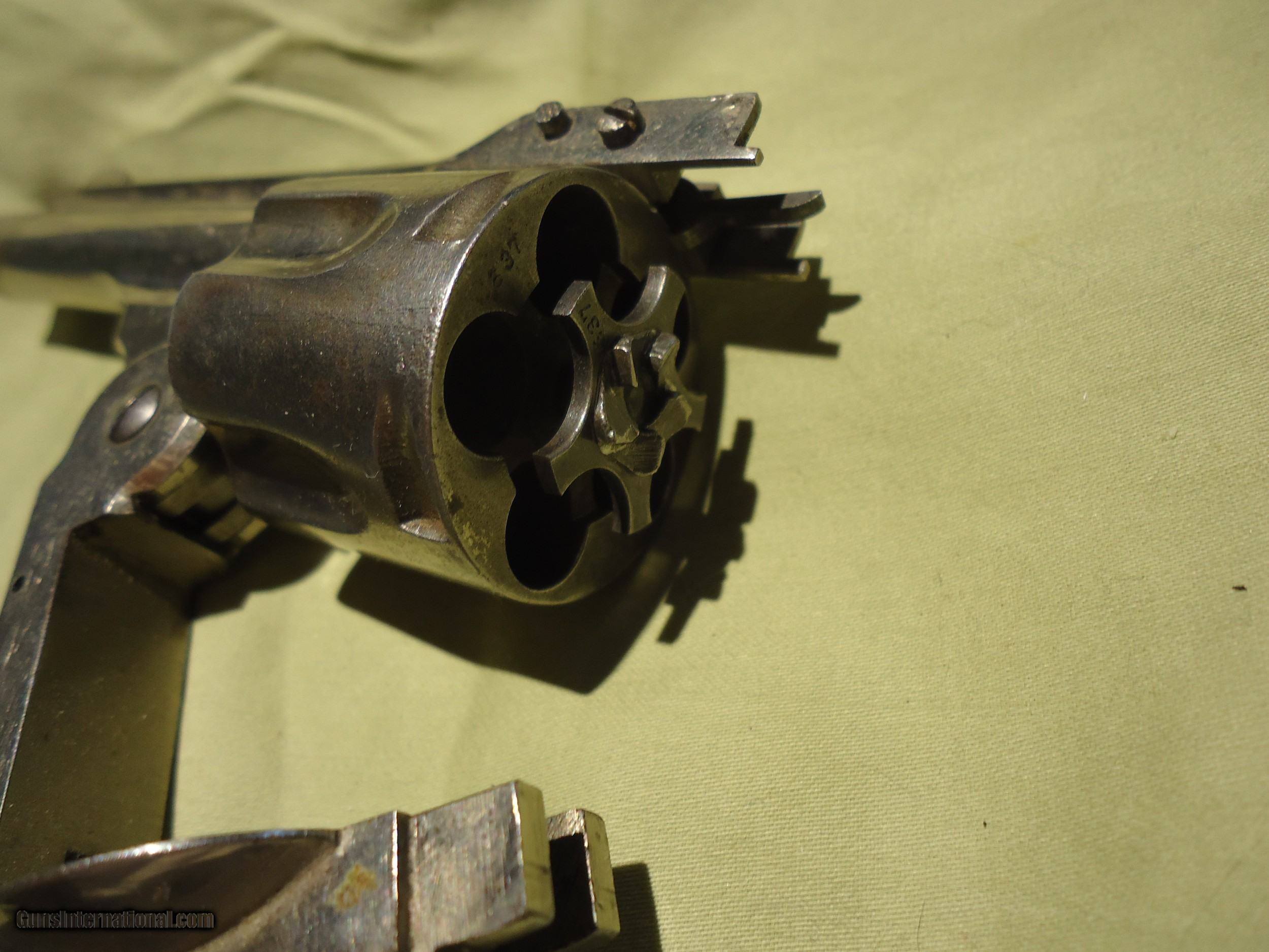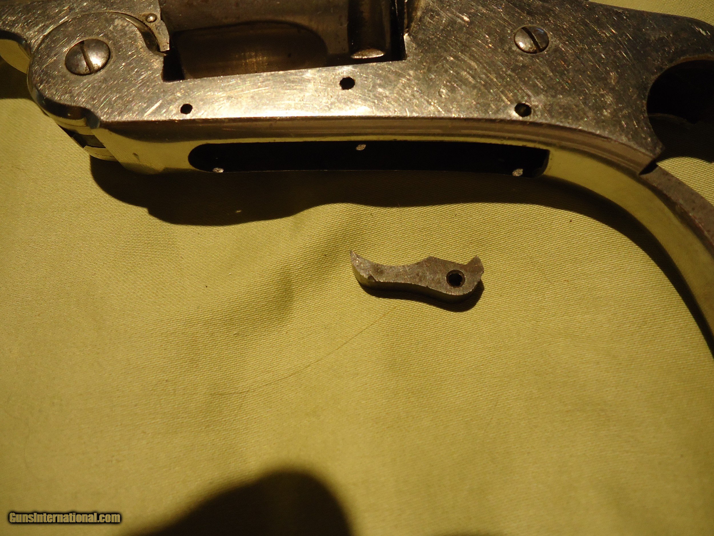 Description: Harrington & Richardson 38S&W large frame nickle plated breaktop parts: Frame, Barrel, hammer w/ screw, sear. SOLD |