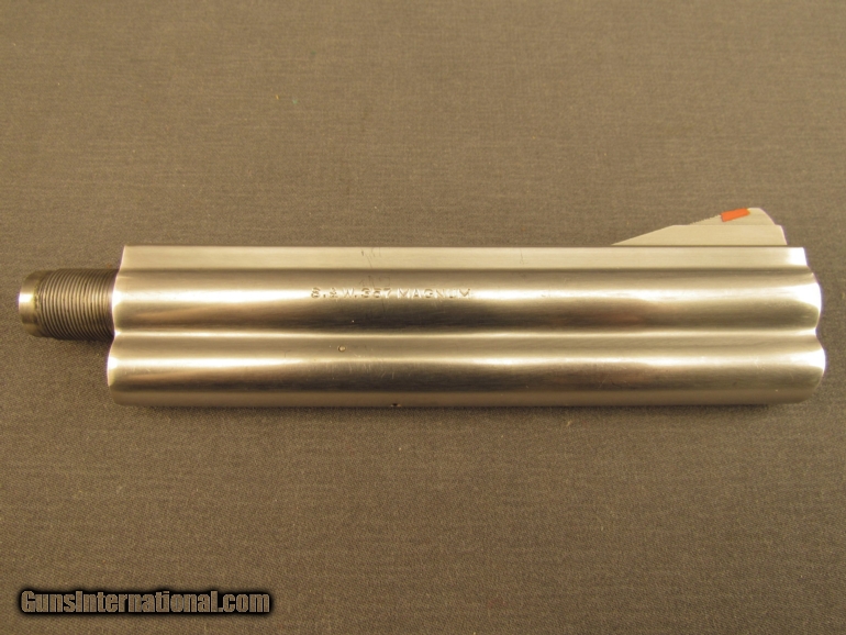 Description: A 5 7/8" full lug stainless barrel with no provision for a pin. Red ramp front sight. Excellent condition. SOLD Manufacturer: S&W Model: 686 Serial Number: NSN |