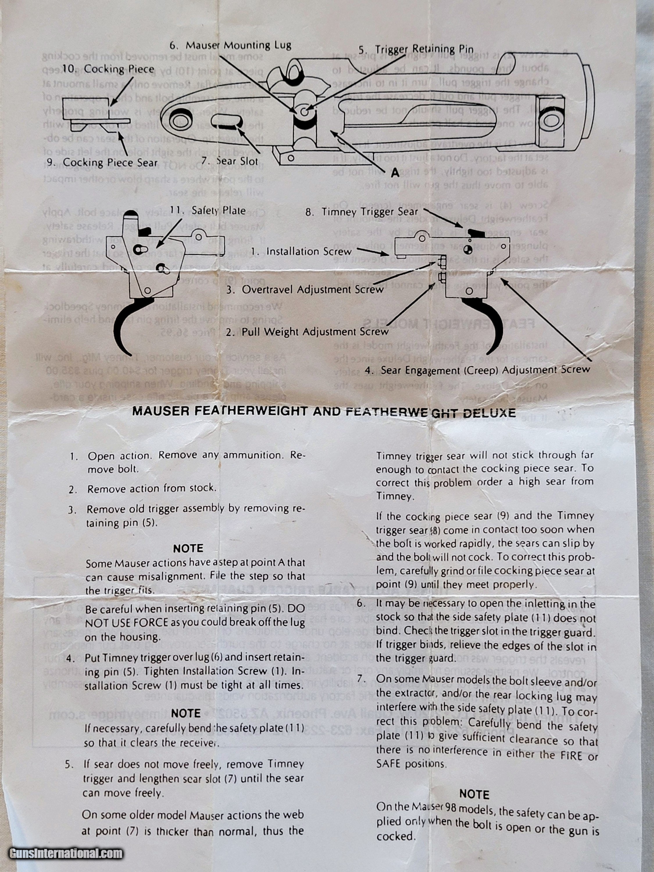 Description: New Kepplinger single set trigger for Mauser, with safety. SOLD |
