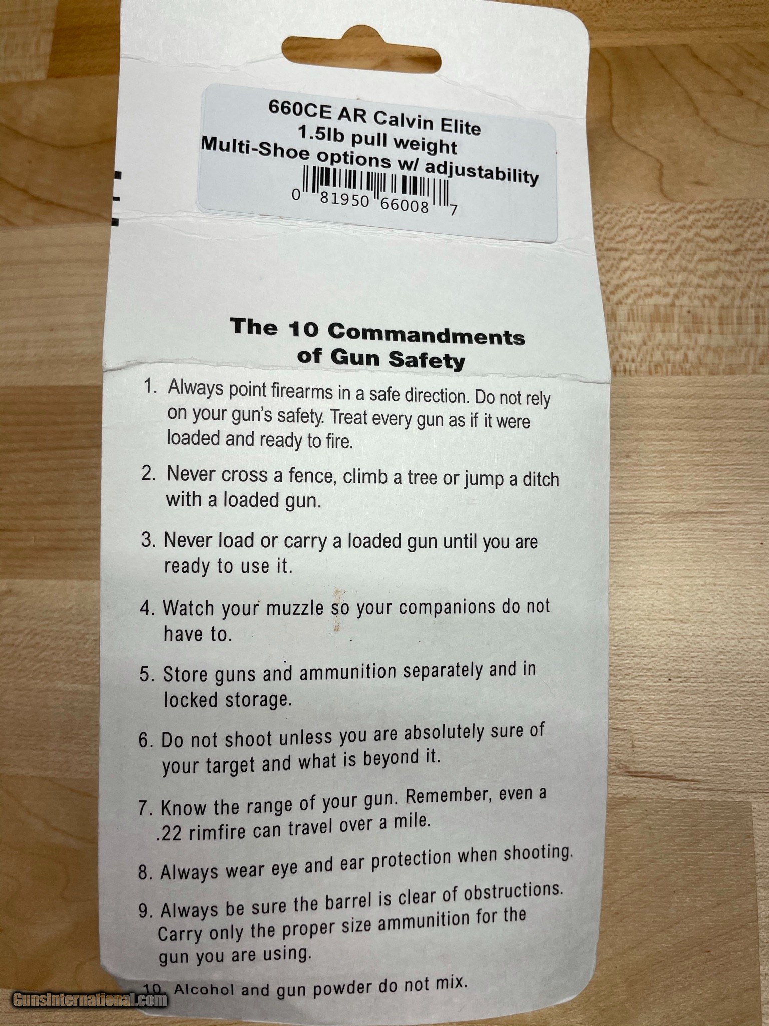 Description: Timney Calvin Elite Drop In Trigger 1.5 LB Pull Weight for the AR platform, New In Factory Packaging. Please add $5.00 shipping. SOLD Rifle Caliber: .223 Remington, .224 Valkyrie, 5.56x45mm NATO |