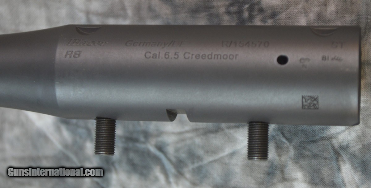 Description: New Blaser R8 6.5mm Creedmoor Barrel, 23" standard taper with factory iron sights and Magazine insert. Can be dropped into any R8 rifle without fitting (requires standard Bolt Head, Not included). SOLD |
