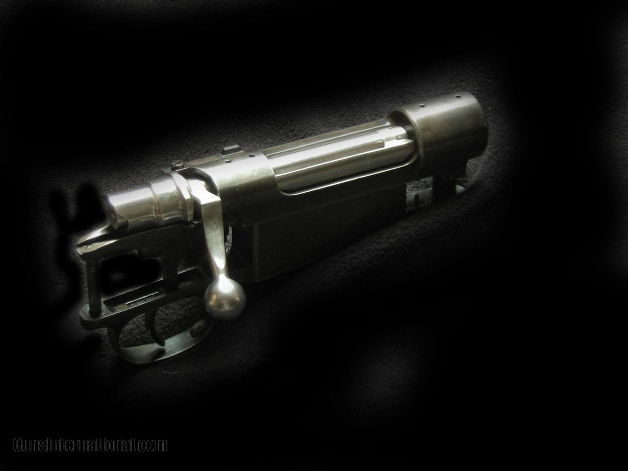 Description: Santa Barbara commercial large ring Mauser action w hinged bottom metal, two stage trigger, standard bolt face, in excellent condition no pitting but blueing a bit faded. SOLD |