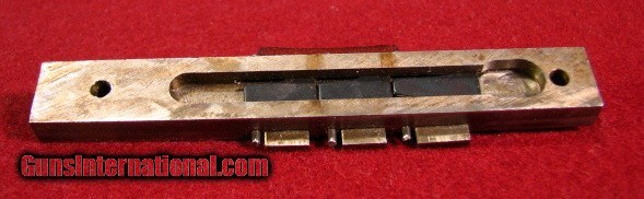 Description: Three leaf rear express sight. All leaves fold and all different heights. Well machined and in the white. NOS estate find. SOLD |