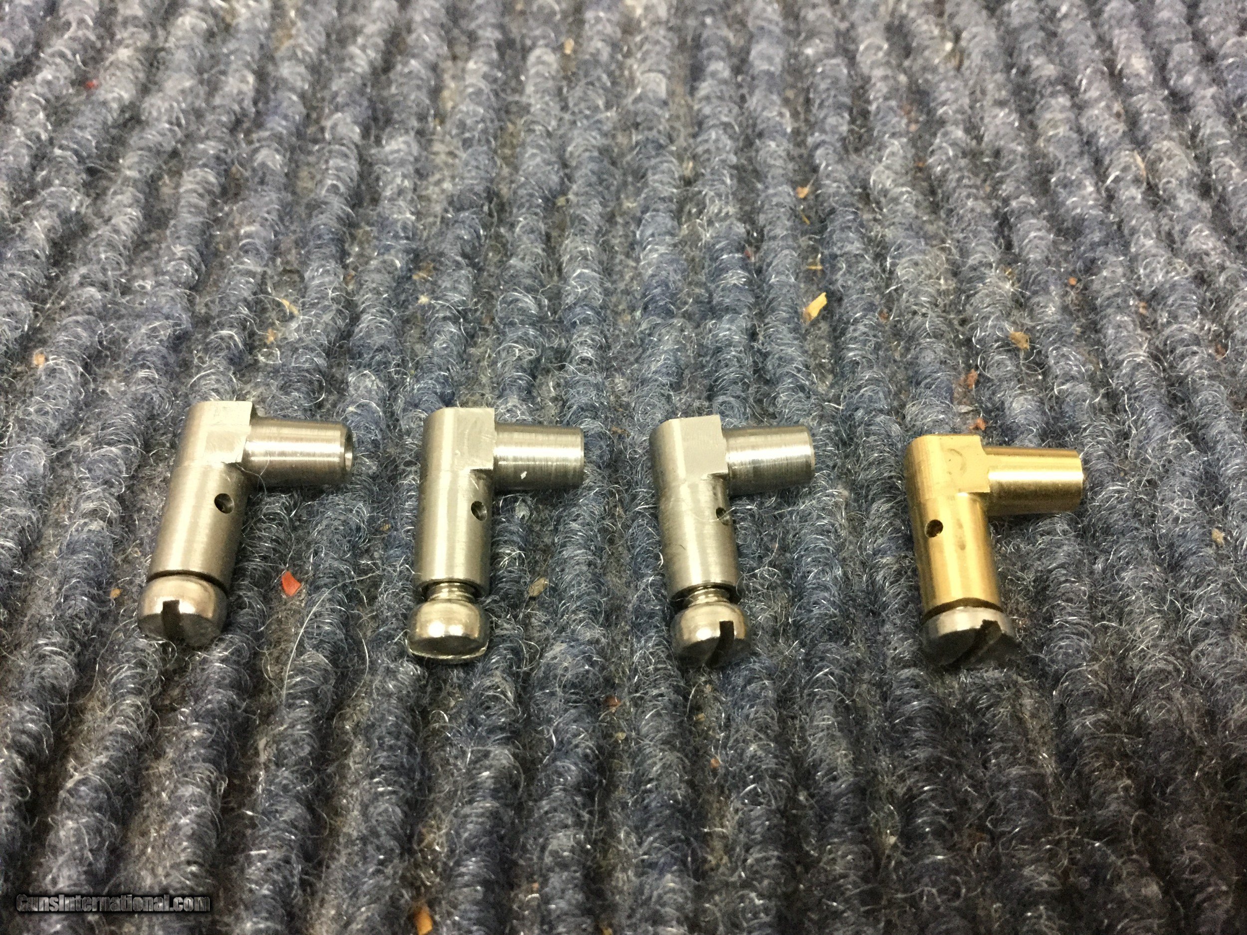 Description: Four new and unused First Model Maynard Carbine nipples. Three are Romano made, and one is Bob Gorsky made. (When last I heard, Romano was getting $80 and Gorsky $75 for these items.) Each has already been tapped with an ignition hole. My price is $40 each, which includes the cost of shipping by USPS priority mail. I only sell and ship to residents in the Continental US, and only accept payment by USPS money order. I am not a retail business, but merely an old guy parting with a number of gun, shooting or history related items I have accumulated through the years. SOLD |