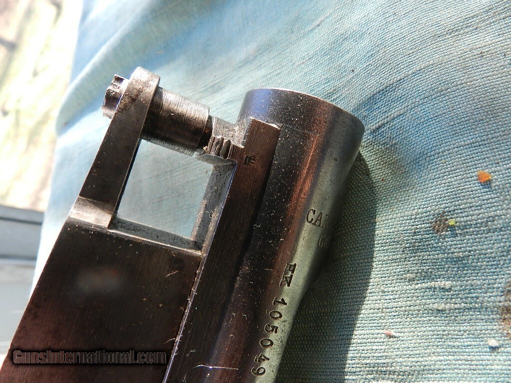 Description: Top of breech stamped Carl Gustaves Stads Gevarsfaktorl 1918. SN is HK105049, and bolt parts 047. Very clean and I can see the firing pin in the bolr. es with a trigger guard, and trigger assembky. When buying a gun always have it examined by a competent gunsmith before shooting. To buy a gun from me you must get a direct email for me, with details, and shipping cost. We don’t have a web site .I prefer money orders or a check. Item ships when funds come in. I try to keep guns affordable, which means I make less money than most dealers. You won’t get altitude sickness, or nose bleed, with my prices! I consistently have the best selection of older guns If you attempt to buy, you must still contact us for details . Best to email to buy. Sometimes a local person can stop buy and purchase before the gun is removed. Sometimes not home to get calls. Some guns are required shipment to a gun dealer near you for a transfer to you when it arrives. Otherwise many older or black powder guns ship to your door. With the widest selection of older guns at great prices, We don’t have a store, and sell on the internet only. I’m easy to get along with. Thank You Price: $295.00 Contact Seller |