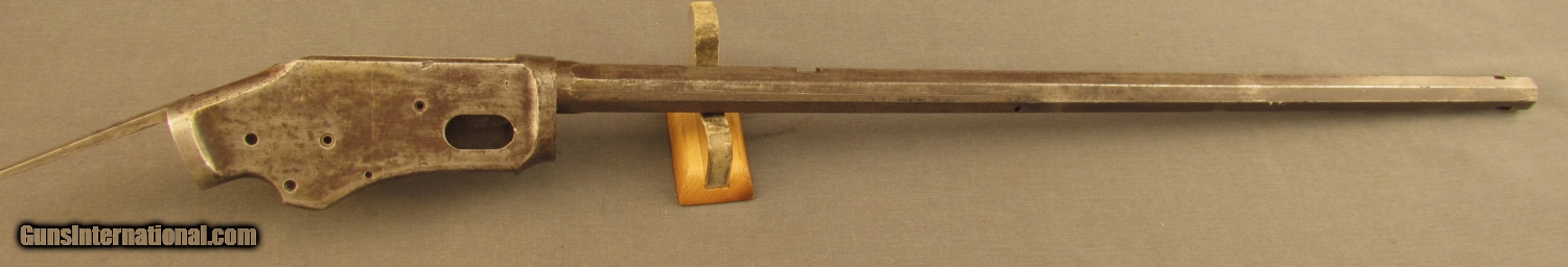 Description: S# 1359, 44 cal. C.F., 24 inch octagon barrel, fair bore with strong rifling that may clean to better. This r4ifle was built from 1879 to 1886 by one of America's most prolific makers. Metal surfaces show dings and scratches with traces of blue under a dark patina. Markings remain fairly clean and patches of pitting and oxidation show in exposed areas. The barrel has more pitting in forend area. This could be a fun project. Antique SOLD Manufacturer: Whitney Model: Kennedy Caliber Info: .44-40 Gauge Info: .44-40 |