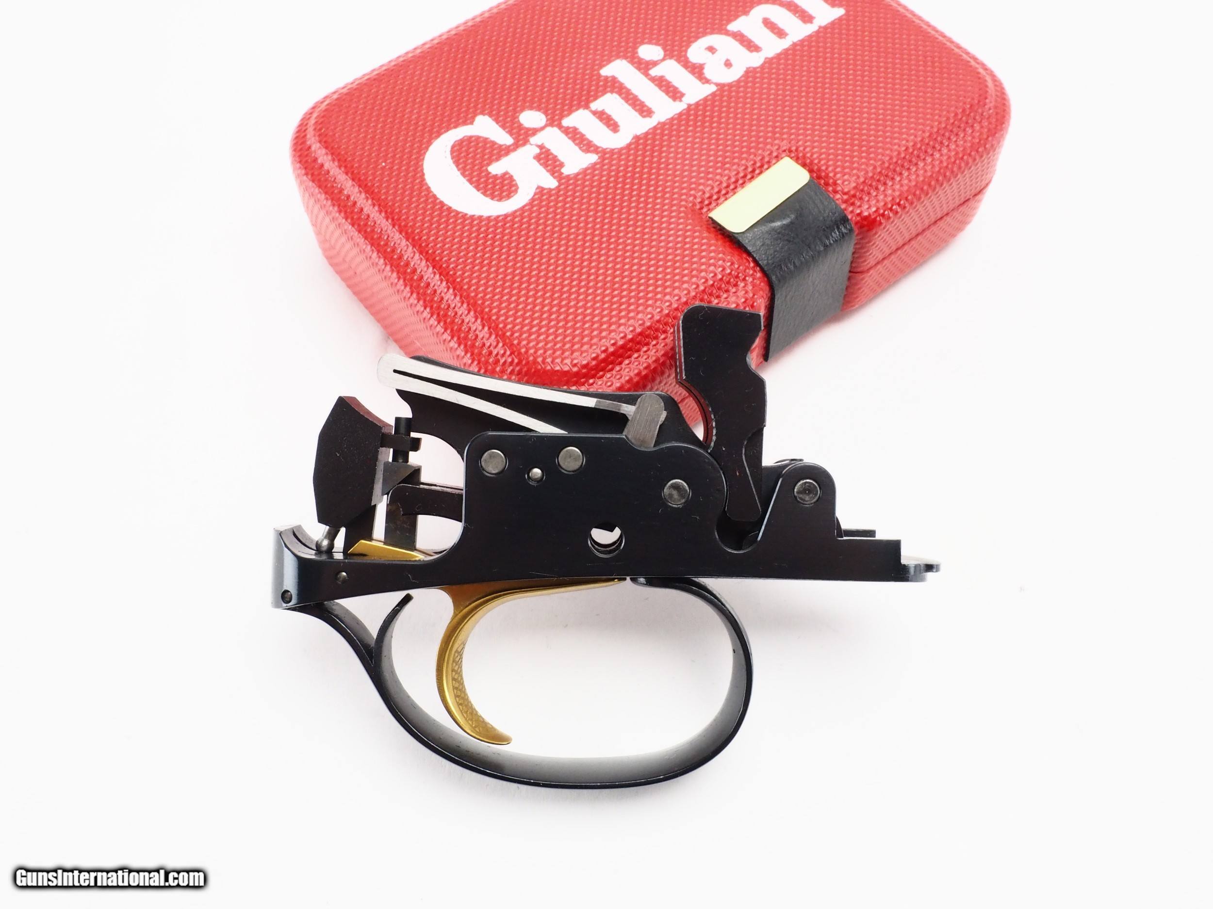 Description: See our home site for pricing and/or to place an order. Brand new Giuliani trigger unit for Perazzi MX-Series guns. Fires bottom/top. This unit features a gold, setback trigger blade. The quality of these trigger units is every bit as good, if not better, than factory Perazzi triggers all while costing a fraction the price. Notes: Color of case may vary. Fitting of trigger to receiver, at buyer's expense, may be required due to Perazzi's manufacturing variances over decades of production. SOLD |