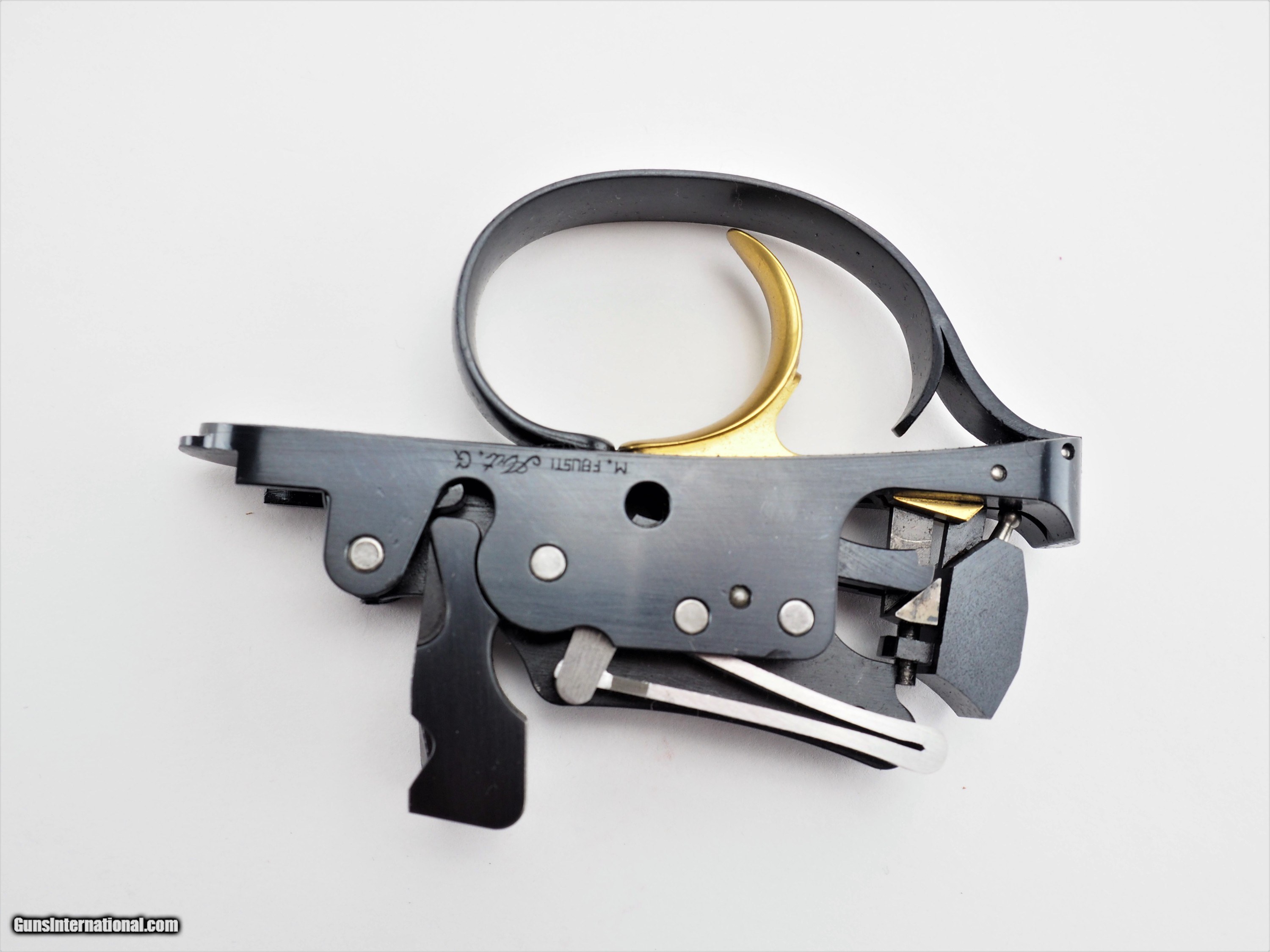 Description: ***FREE shipping w/ insurance via UPS ground to the Lower 48!*** Brand new Giuliani trigger unit for Perazzi MX. Features a gold trigger blade and Lusso engraving, melding perfectly with your MX2000 or Lusso receiver. Note: Color of case may vary. Fitting of trigger to receiver by a competent gunsmith may be required due to Perazzi's manufacturing variances over decades of production. SOLD |