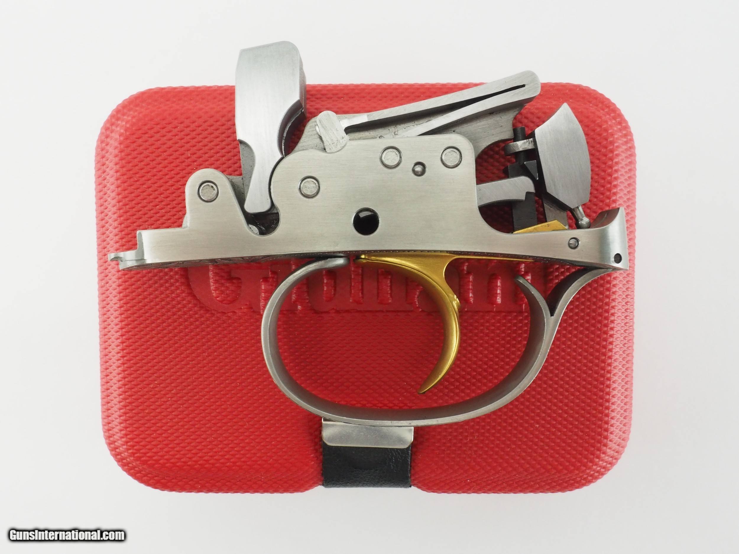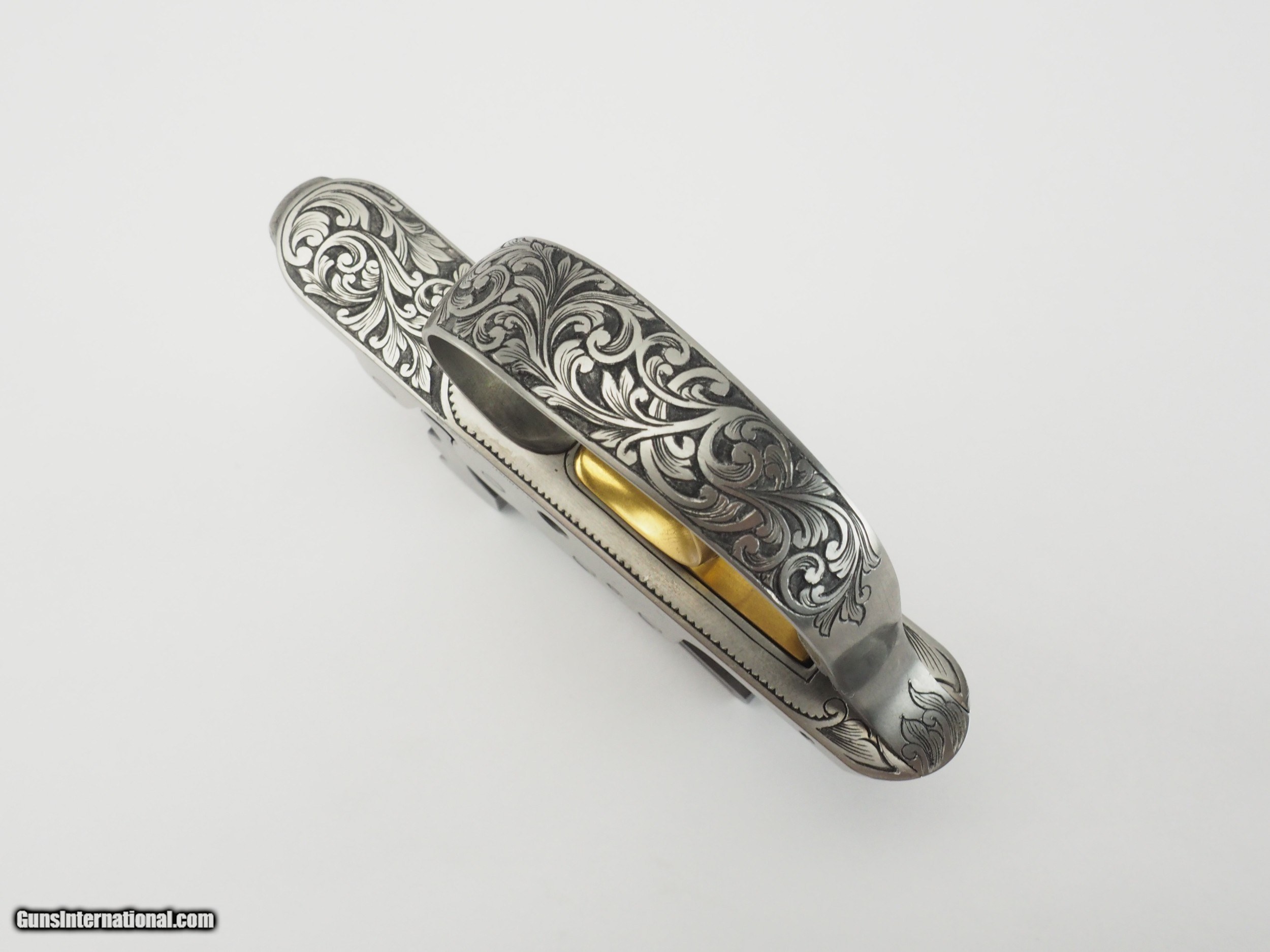 Description: See our home site for pricing and/or to place an order. Brand new Giuliani trigger unit for Perazzi MX. This is a Classic trigger unit with flat hammer springs, gold trigger blade, old silver (French gray) finish, and beautiful hand-engraved Pattern #101 scroll pattern. These trigger units are every bit the quality (or better!) of Perazzi factory units, at a fraction of the price. Note: Color of case may vary. Fitting of trigger to receiver, by a competent gunsmith, may be required due to Perazzi's manufacturing variances over decades of production. SOLD |